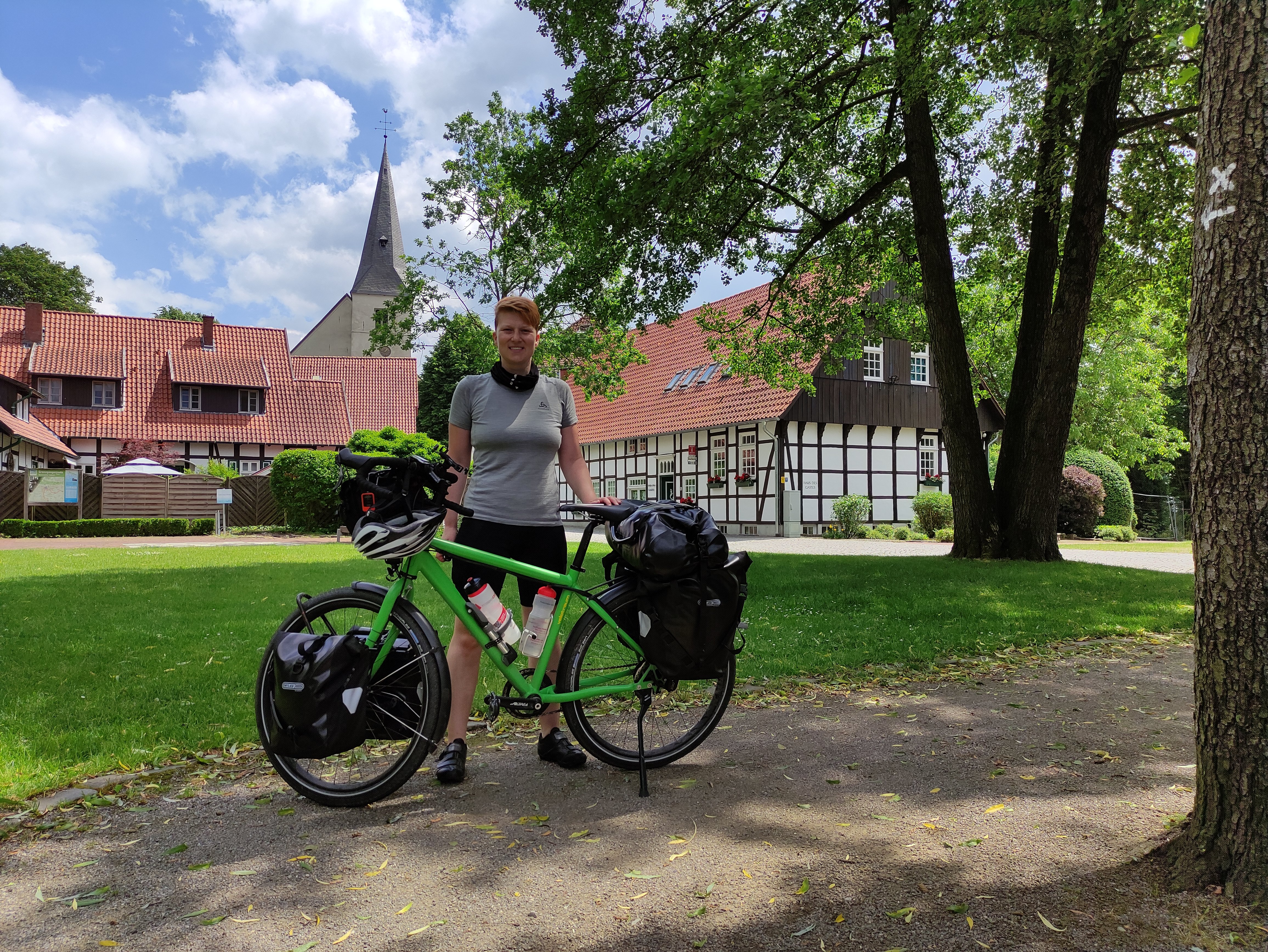 Los ging es jedoch letzten Sonntag in Münster. Noch etwas müde, da in der Nacht ein Gewitter über den Campingplatz gezogen ist und ich deshalb nicht viel geschlafen hatte. Da ich bei Gewitter immer einer kleiner Schisser bin, habe ich einen Teil der Nacht in den Duschräumen verbracht, da ich mich im Zelt nicht ganz so sicher gefühlt habe. Zum Glück war es ein Delux Campingplatz (mit Delux Preisen 😉 )und so waren die Duschräume beheizt, es gab sogar eine kleine Sitzbank mit Kissen und das ganze wurde noch mit Musik aus dem Radio musikalisch untermalt. Was will man mehr?!
