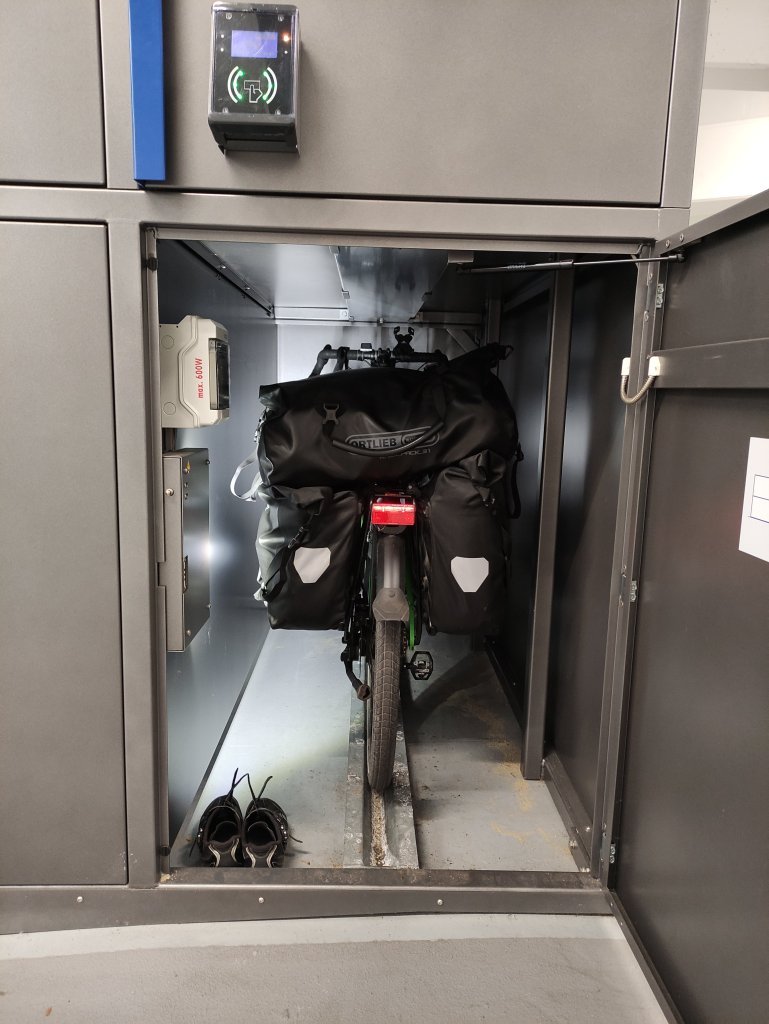 Leicht verkatert, quälte ich mich am nächsten Morgen nach Bremen. Diese Etappe war nicht meine und ich war froh als ich ankam. Und wieder war ich in einer Fahrradstadt gelandet. Es gab wieder eine Radstation, in der ich dieses Mal mein Rad jedoch sogar mit Gepäck abstellen konnte. Hierfür kann man im Radparkhaus für 1€ pro Tag eine Fahrradbox mieten, in der genug Platz ist und eine Steckdose für E-Bikes hätte es in der Box auch noch gegeben.