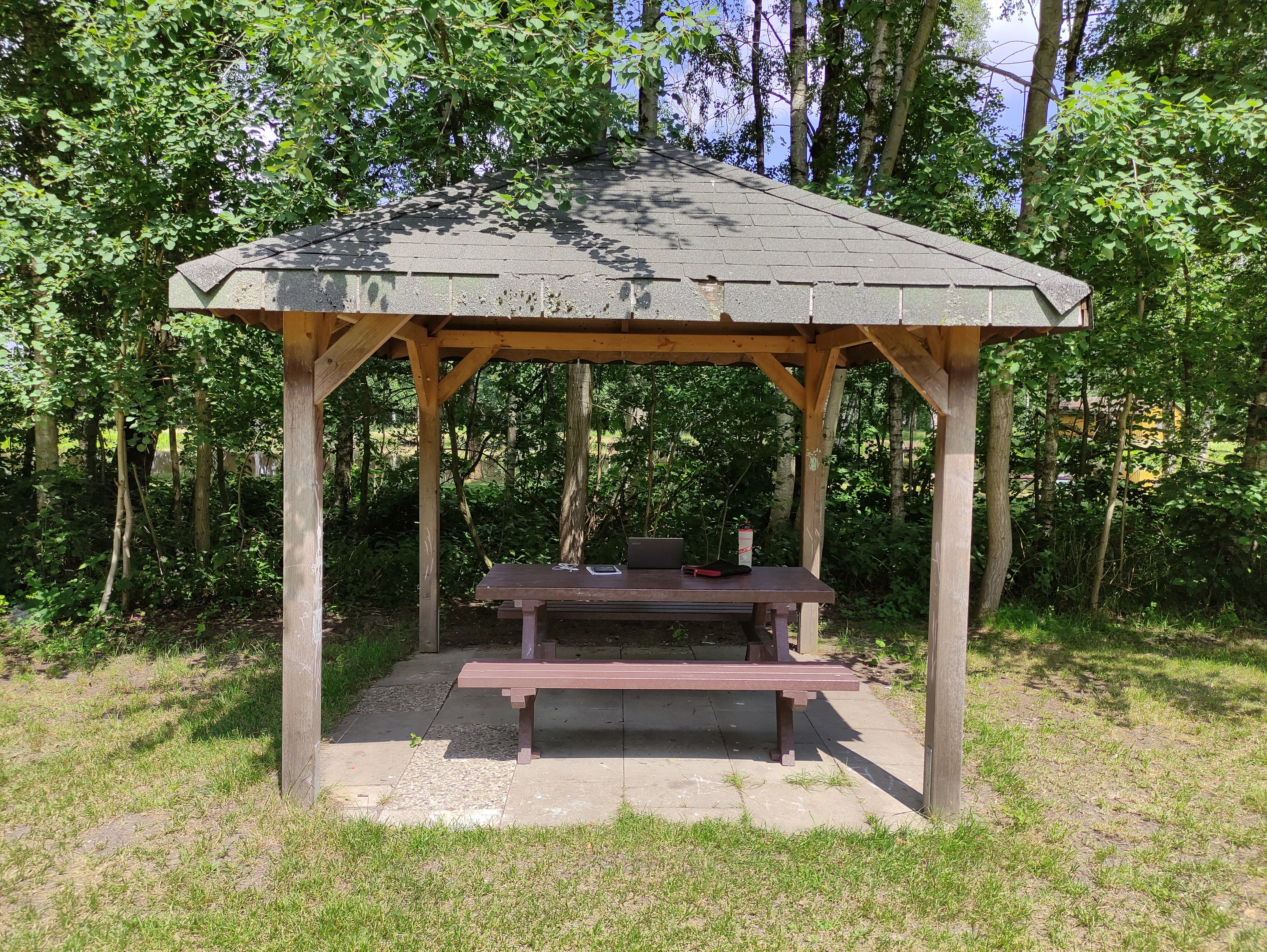 Ein kleines Footoshooting für die Website des Campingplatztes durch die Besitzerin gab es auch noch, während ich hier mit meinem Laptop unter der überdachten Sitzmöglichkeit sitze und den Blogartikel schreibe. 😀