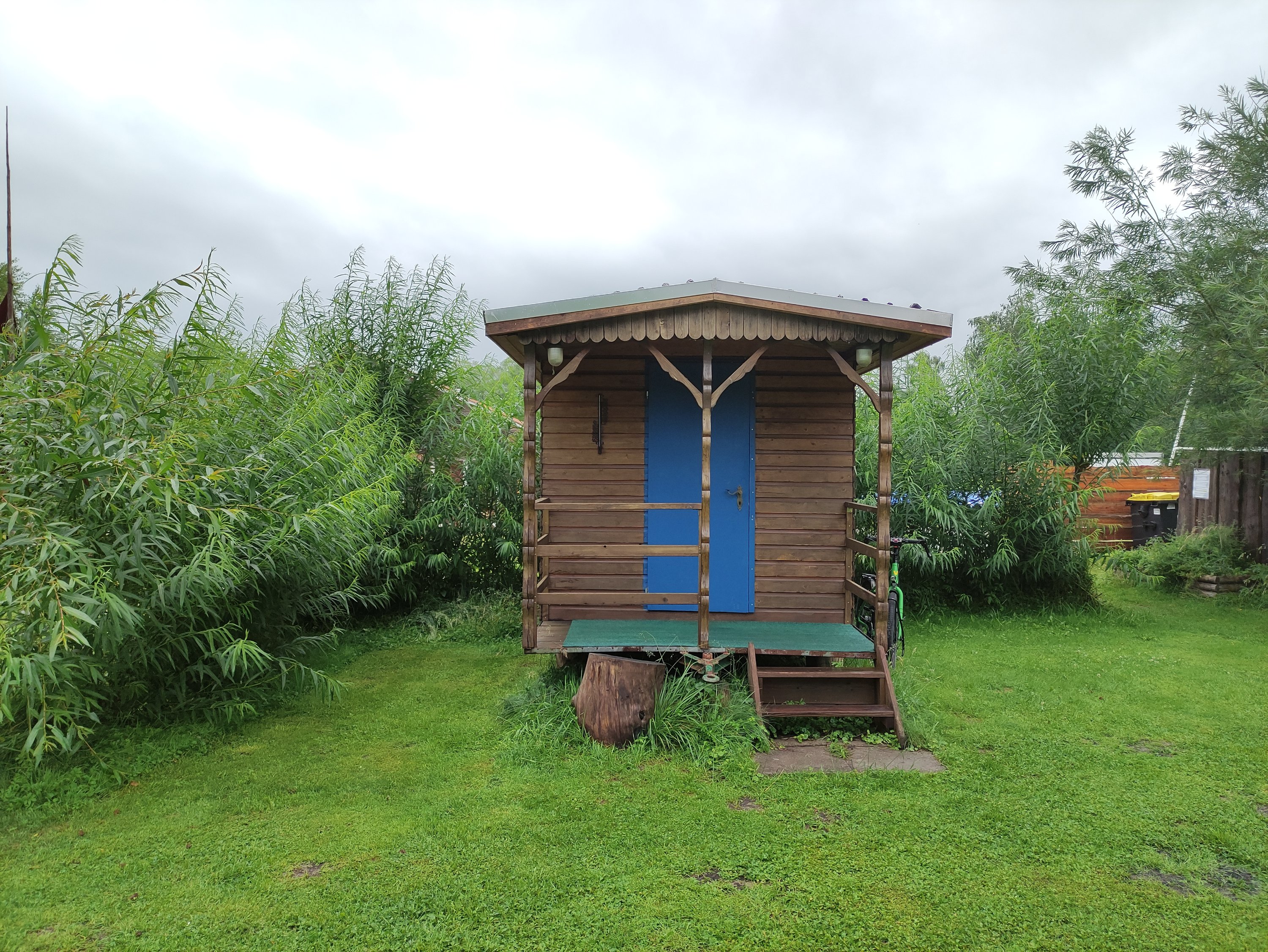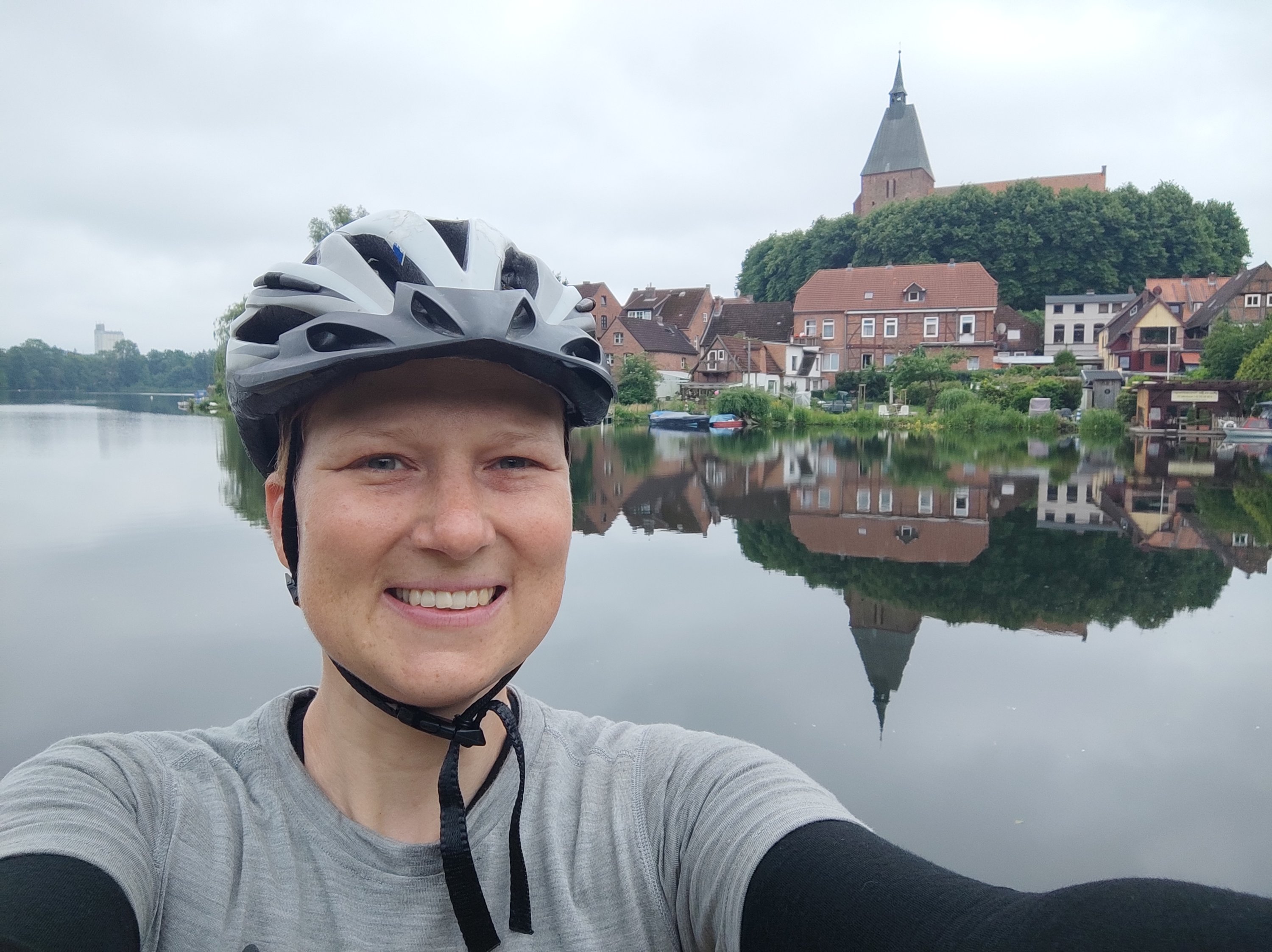 Durch die Niederschläge am Tag zuvor, waren die Wege an dem Morgen noch ziemlich nass und so war die Tour zum Ratzeberger See eine reine Schlammschlacht. Da ich ja mittlerweile eher auf die Beschilderung als auf Komoot höre, folgte ich einem Radwegen, bei dem ich das Gefühl hatte, das hier seit mindestens einem Jahr kein Radfahrer mehr vorbei gekommen ist – meterhohes Gras, Gestrüpp, ein Trampelpfad und tief in den Weg herabhängende Äste – ein kleines Abenteuer. Nur um dann wieder auf den Weg, den Komoot vorgeschlagen hatte, zurückzukommen, der super toll asphaltiert war – wie man es macht, ist es verkehrt 😀 Anschließend wurden die Wege wieder besser und es ging über Mölln – der Till Eulenspiegel Stadt – nach Ratzeburg. Da es jedoch schon immer Dunkler kam, fiel der Kaffee kurzer Hand aus und nach dem Einkaufen ging es direkt zum kleinen Campingplatz des Kanu-Centers. Da nun auch im Norden Unwetter angekündigt wurden, wovon ich lange Zeit verschont geblieben bin, gönnte ich mir wieder einen schnuckeligen Bauwagen auf dem kleinen Campingplatz und saß das Unwetter einfach aus.