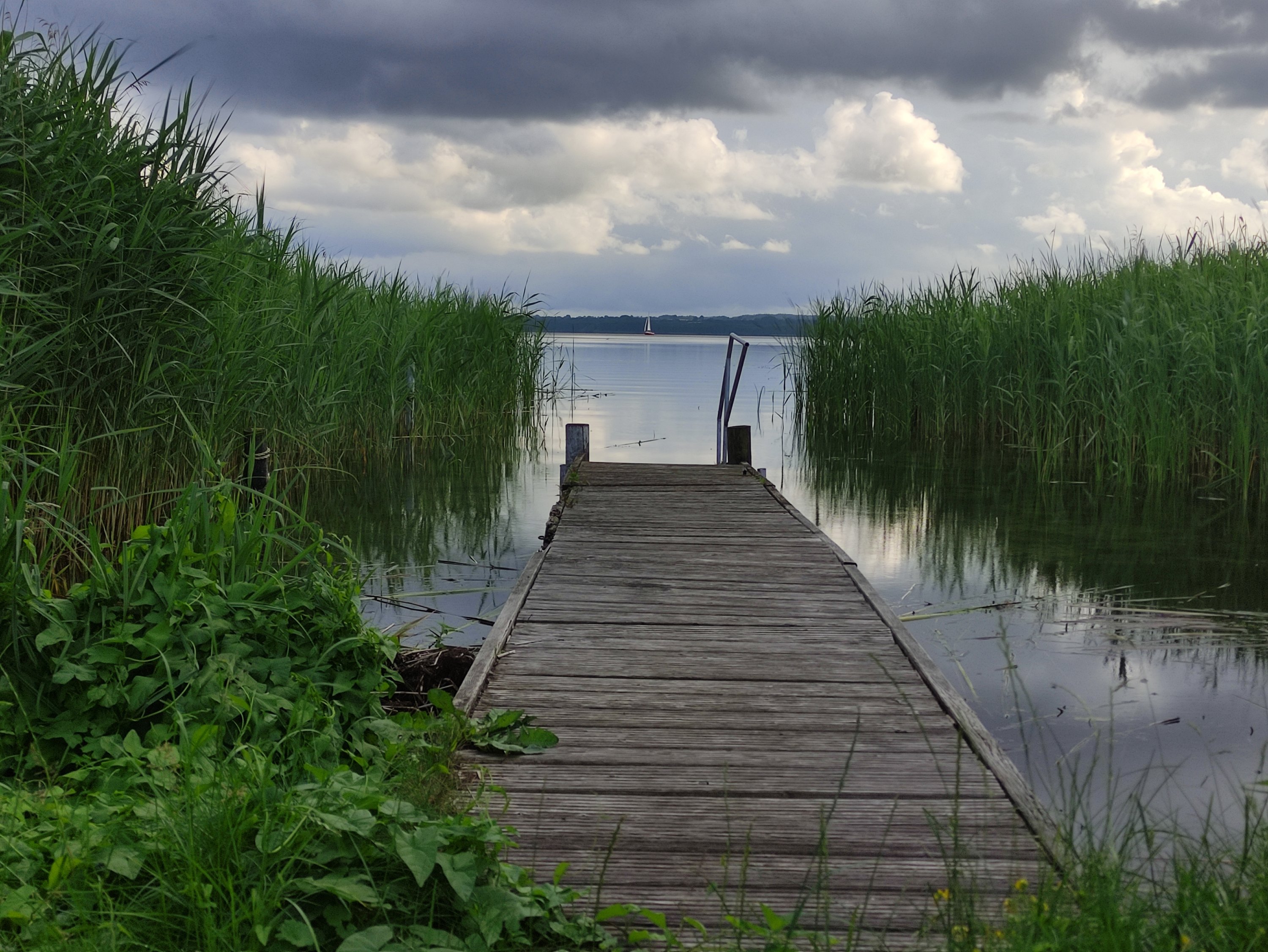 Am Abend und in der Nacht war ich heilfroh, dass ich im Bauwagen war, denn es schüttete mal so richtig, sodass auf der Wiese davor der Regen einen kleinen See bildetet und ich mit dem Zelt einfach nur abgesoffen wäre. Am nächsten Nachmittag klärte es auf und ich genoss bei einem Burger im Fährhaus und beim anschließenden Spaziergang entlang des Sees die tolle Aussicht.