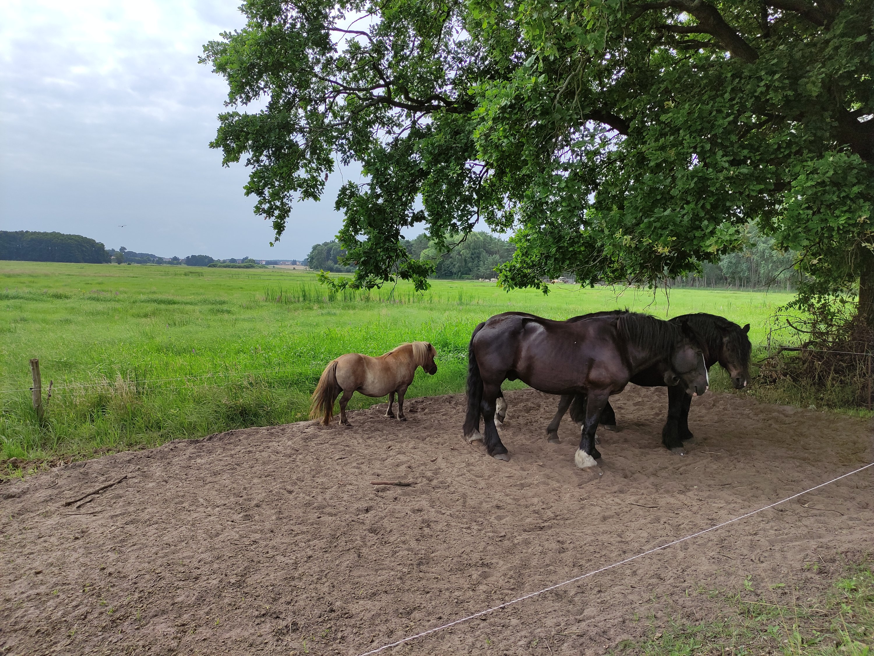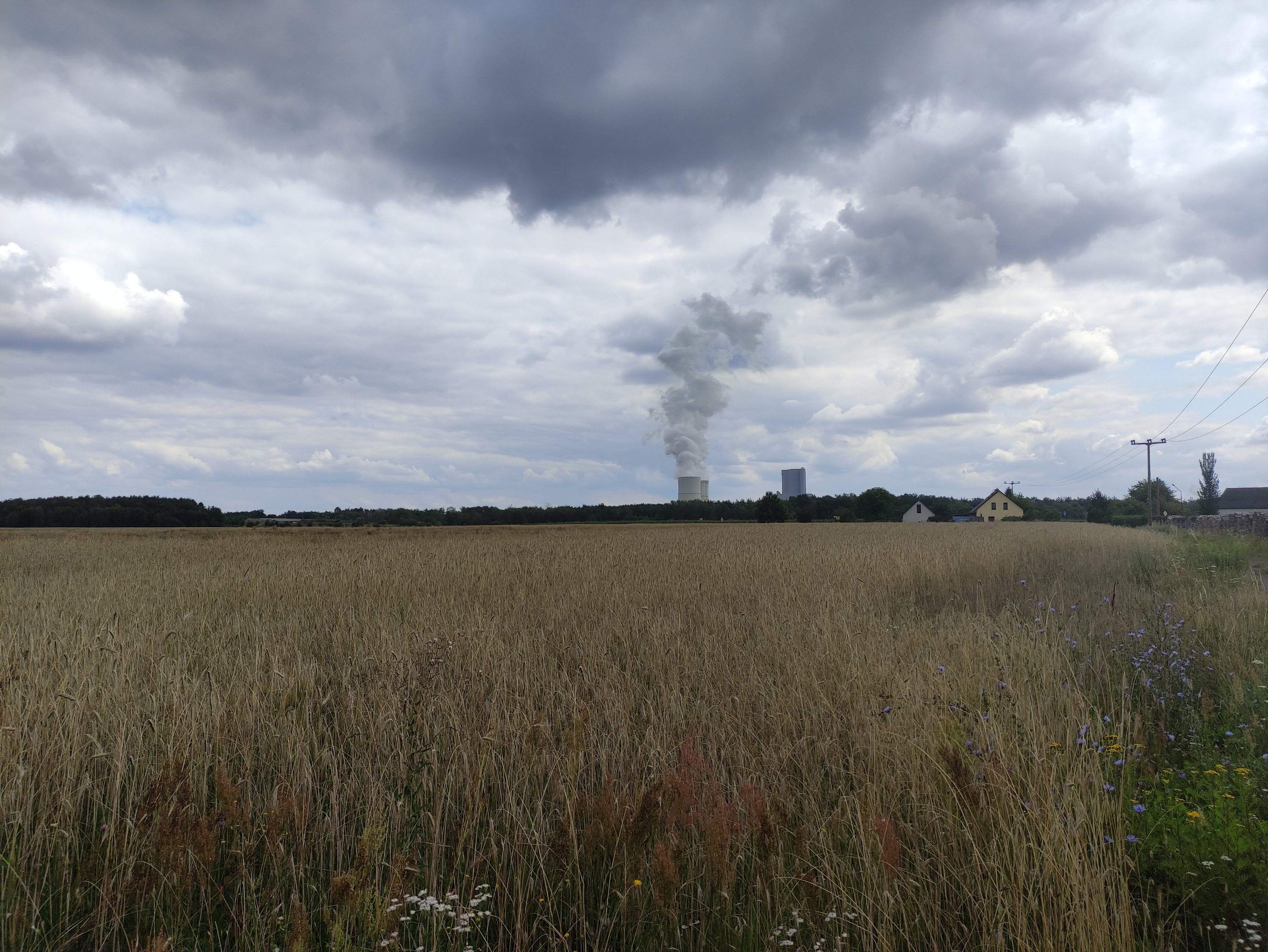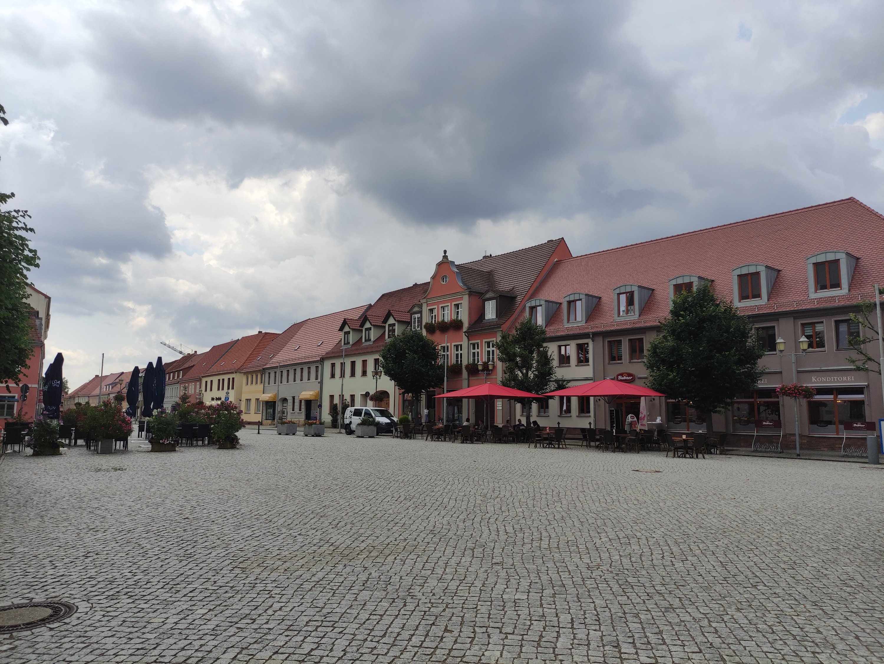 Für den nächsten Tag war wieder Regen angesagt und als wir morgens aus dem Küchenfenster schauten, fing es auch schon an. Wir warteten auf eine Regenpause und machten uns dann auf den Weg nach Großräschen. Wir hatten Glück und blieben bis zum Schluss vom Regen verschont. Wobei wir die letzten Kilometer schon sehr in die Pedalen treten mussten, da eine fette schwarze Wolkenwand auf uns zu kam. Kaum hatten wir unsere Unterkunft erreicht, fing es auch schon an wie aus Kübeln zu schütten. Glück gehabt – würde ich sagen. Bei dem Regen hätten schon wenige 100 Meter gereicht, um bis auf die Unterwäsche nass zu sein.