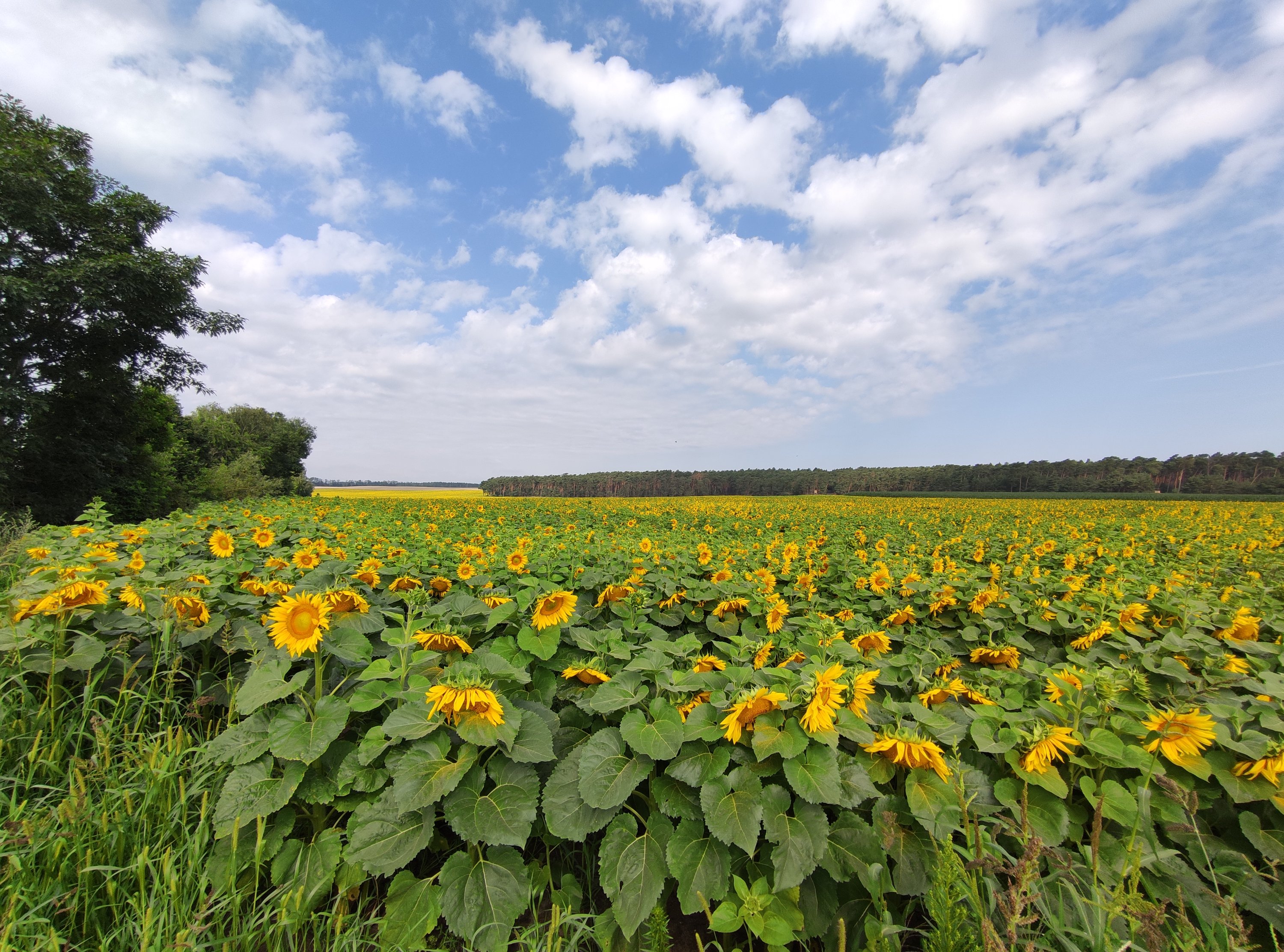 Wenn ich unsere Radreise in Brandenburg entlang der „Tour Brandenburg“ mit wenigen Worten beschreiben sollte, dann würde ich sie wie folgt beschreiben: Getreidefelder und Sonnenblumenfelder bis zum Horizont, Kiefernwälder und Seen ohne Ende. Wer in der Natur ohne viele Menschen und Trubel mit dem Rad unterwegs sein möchte, dem kann ich Brandenburg und im Speziellen die „Tour Brandenburg“ sehr ans Herz legen. In Teilen von Brandenburg wurde sogar wie in den Niederlanden das Radwegenetz mit Knotenpunkten aufgebaut, sodass man sich nur die Nummern merken muss und dann den Schildern mit der richtigen Nummer folgen muss.