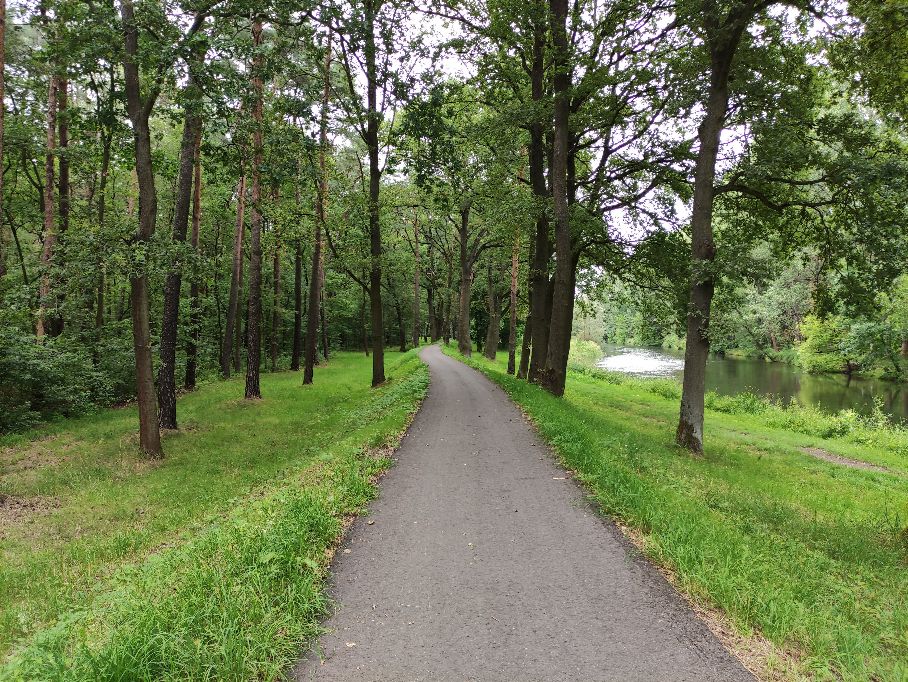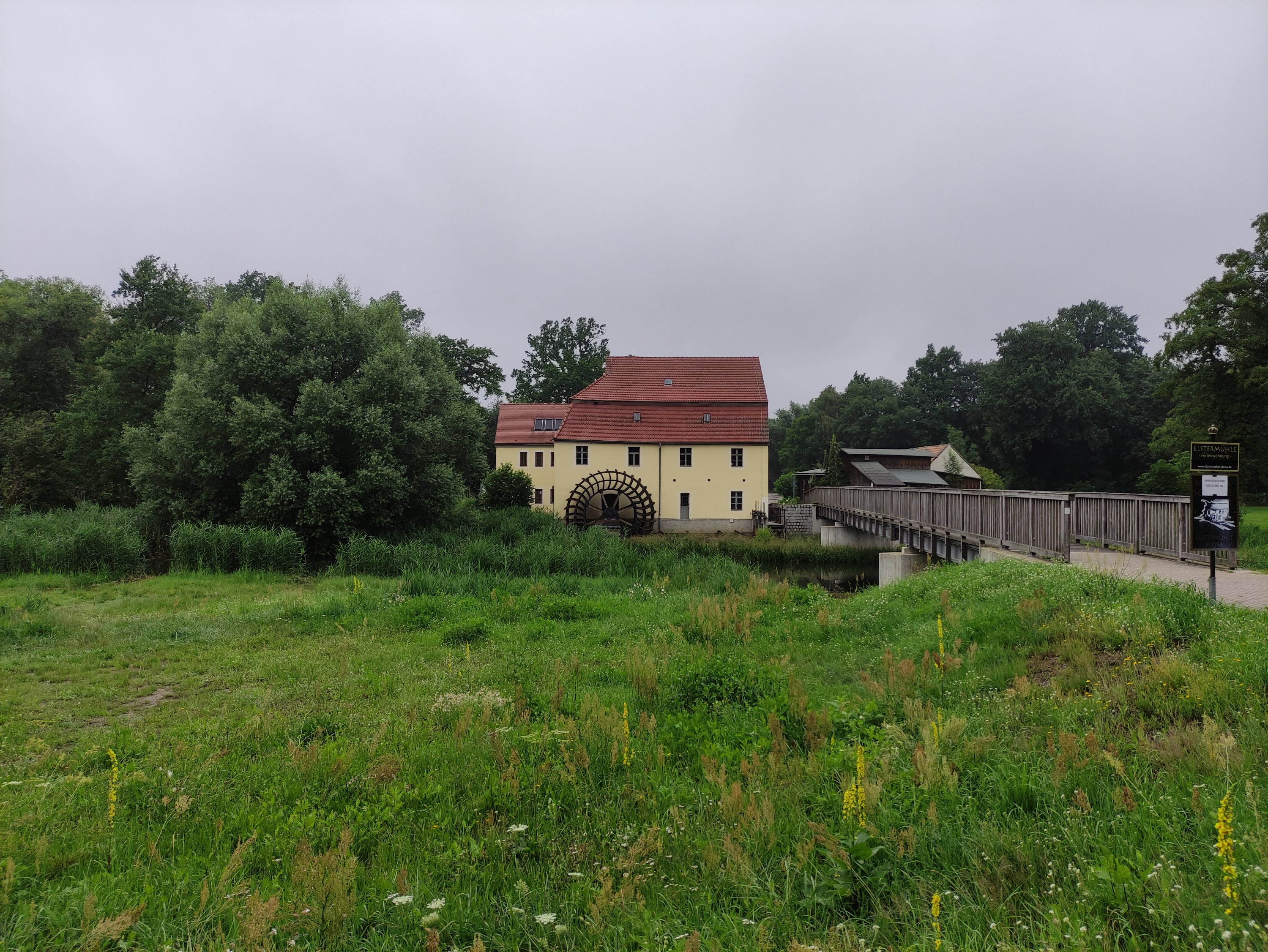 Was wir allerdings auf der Tour gelernt haben, ist, dass man die Unterkünfte nicht so weit weg von der eigentlichen „Tour Brandenburg“ wählen sollte, da man nach den super tollen Radwegen entlang der Tour dann doch ein wenig von den Wegen abseits der Tour enttäuscht sein könnte. So ging es uns am Anfang auf unserer Etappe von Drahnsdorf nach Baden Liebenwerda, bis wir in Schönewalde wieder auf der Tour waren. Diese folgte kurz nach Schönewalde dem Schwarze-Elster-Radweg bis nach Bad Liebenwerda. Hierbei ging es die meiste Zeit direkt am Wasser oder auf dem Damm entlang. Einen kleinen Kaffee-Stopp legten wir in Herzberg ein und konnten so den kurzen Regenschauer im Trocken verbringen.