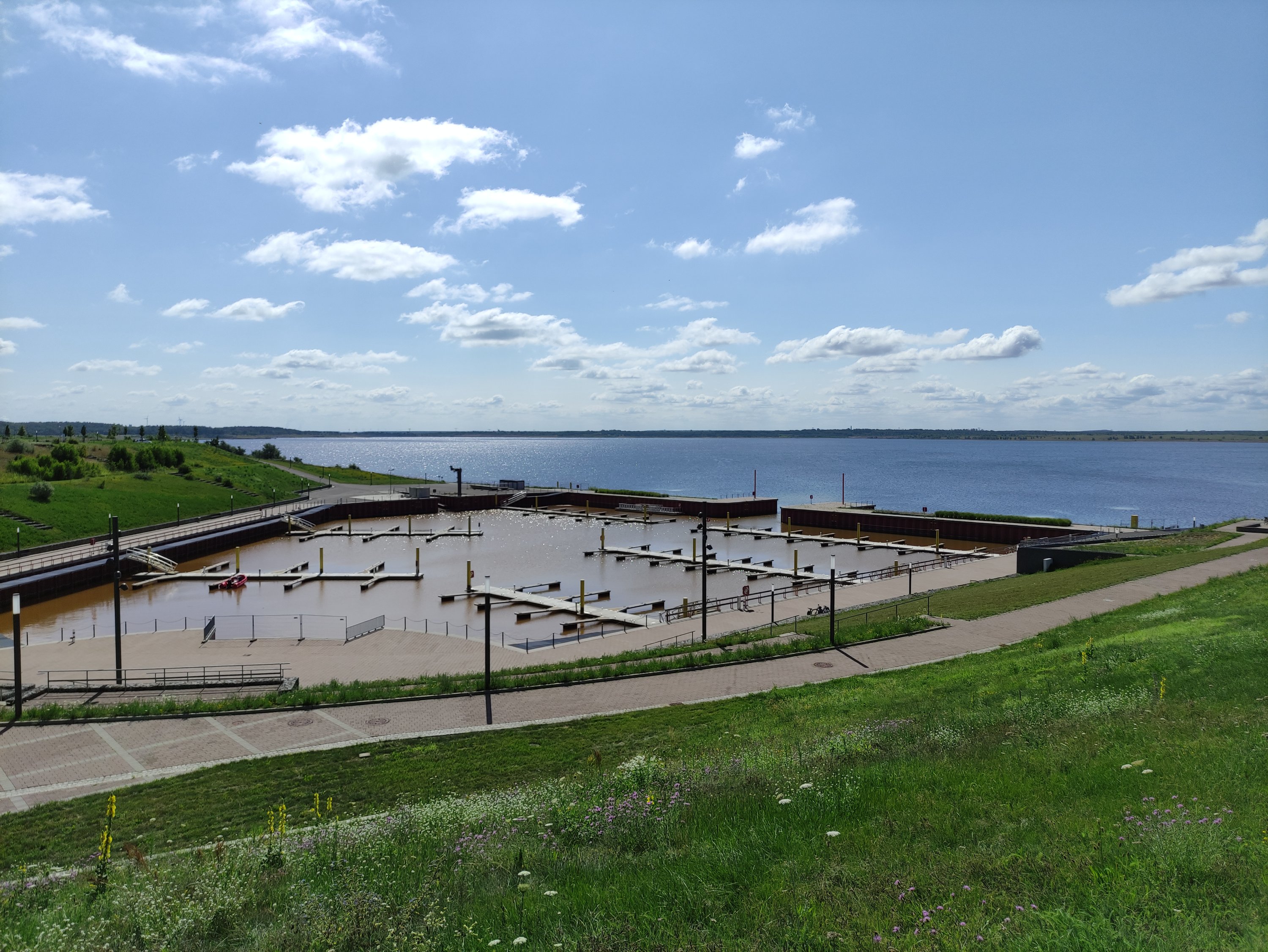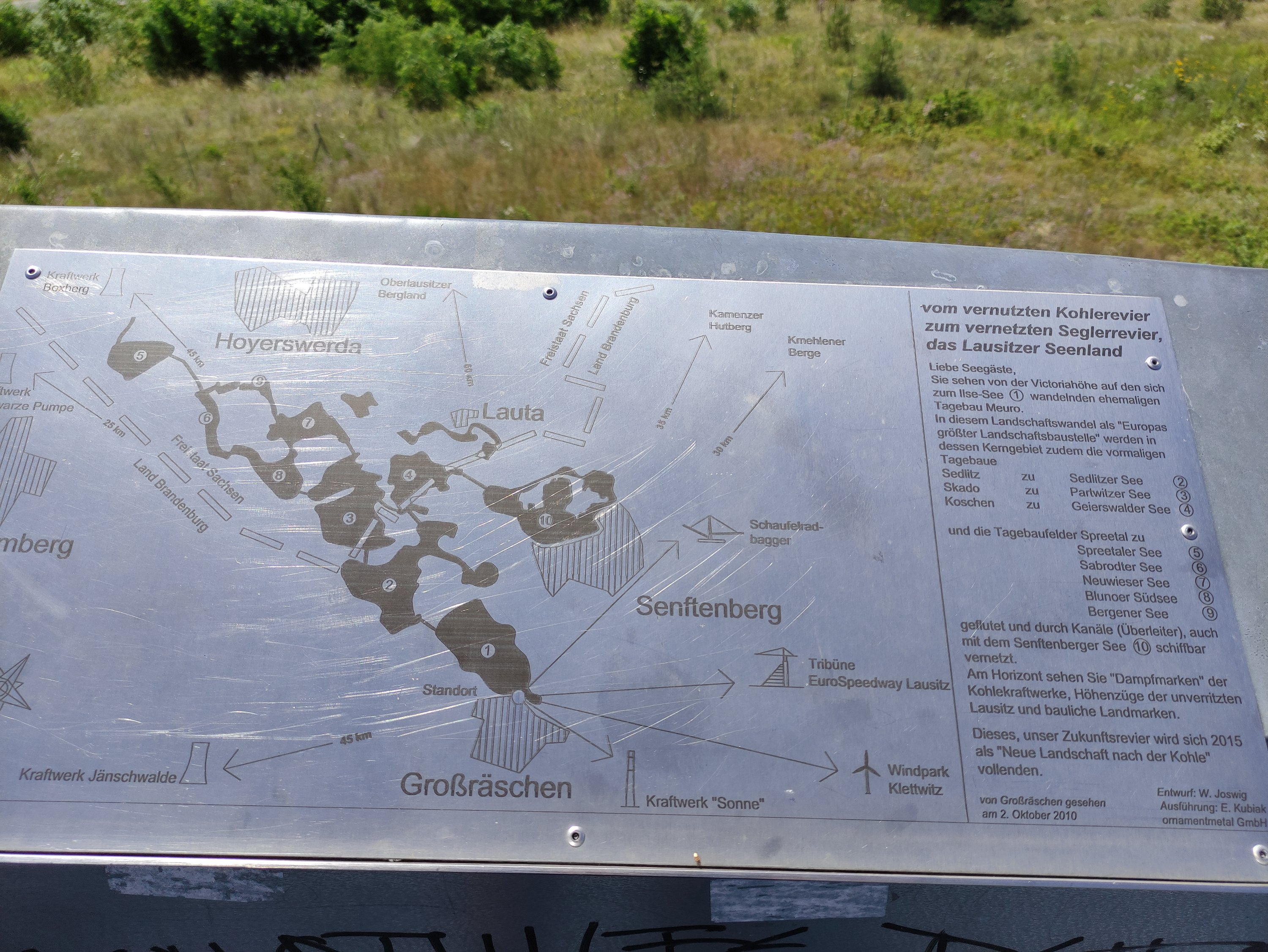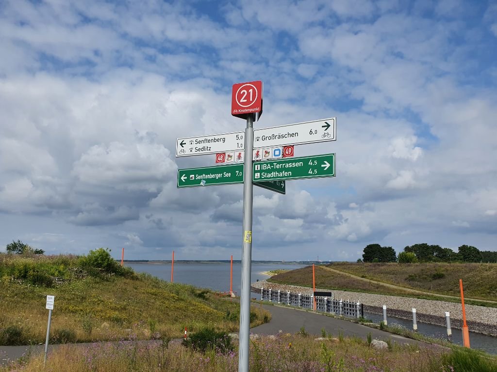 Im Haus Vier in Großräschen legten wir nun ein paar wohl verdiente Ruhetage ein, da wir die letzten 5 Tage am Stück gefahren sind und ich in dieser Woche gleich 2 neue Rekorde auf meiner Gesamttour aufgestellt habe. Zum einen bin ich mit 87km meine neue längste Tagesetappe gefahren und gleichzeitig bin ich in der Woche die meisten Kilometer (362km) gefahren. Großräschen ist Teil der Lausitz und der Großräschener See war einst ein Braunkohletagebau wie 9 andere Seen in der Region. Alle 10 Seen sind oder werden nun geflutet und sollen mit Kanälen zur größten, künstlich angelegten Seenlandschaft Europas verbunden werden.