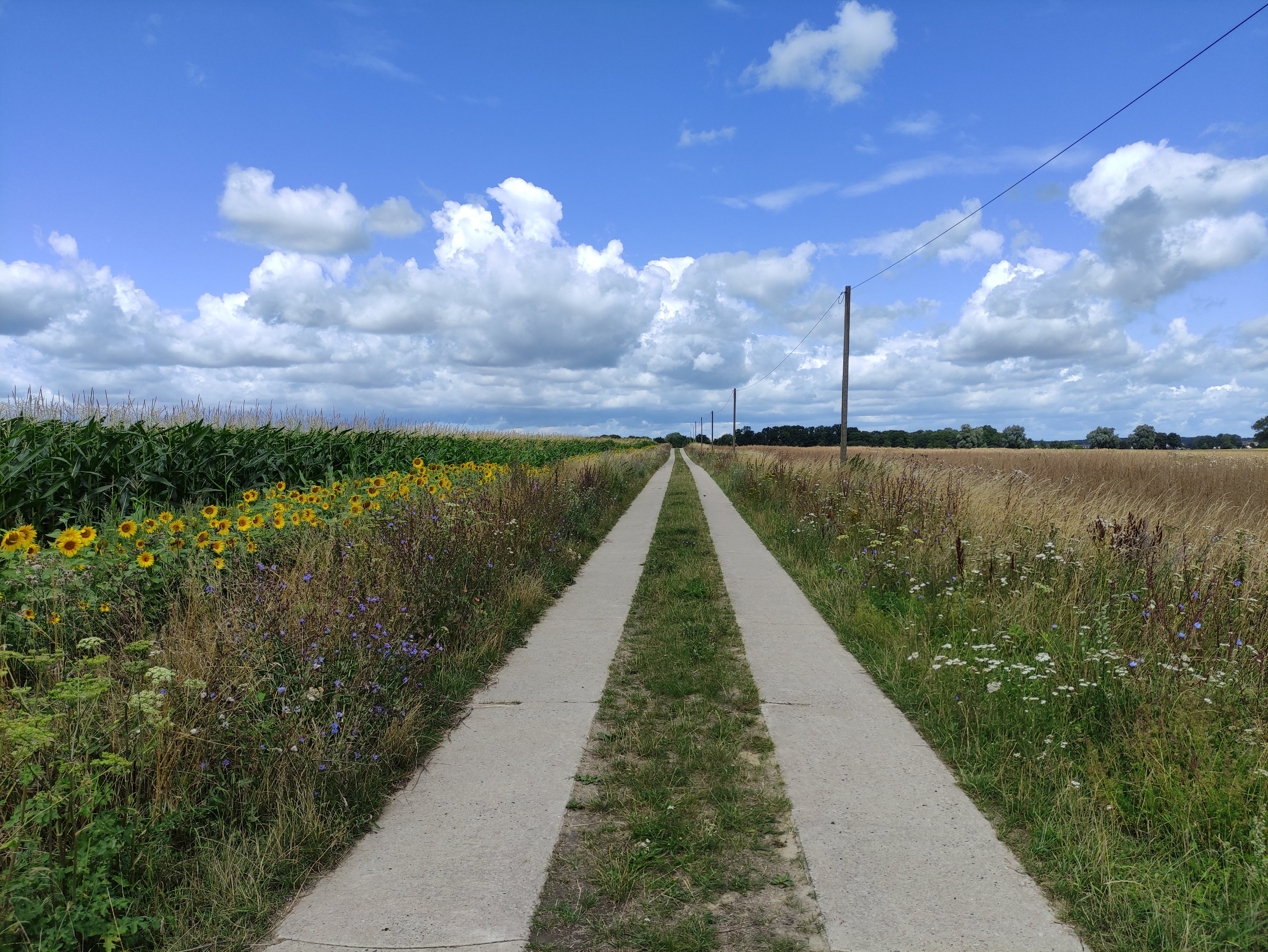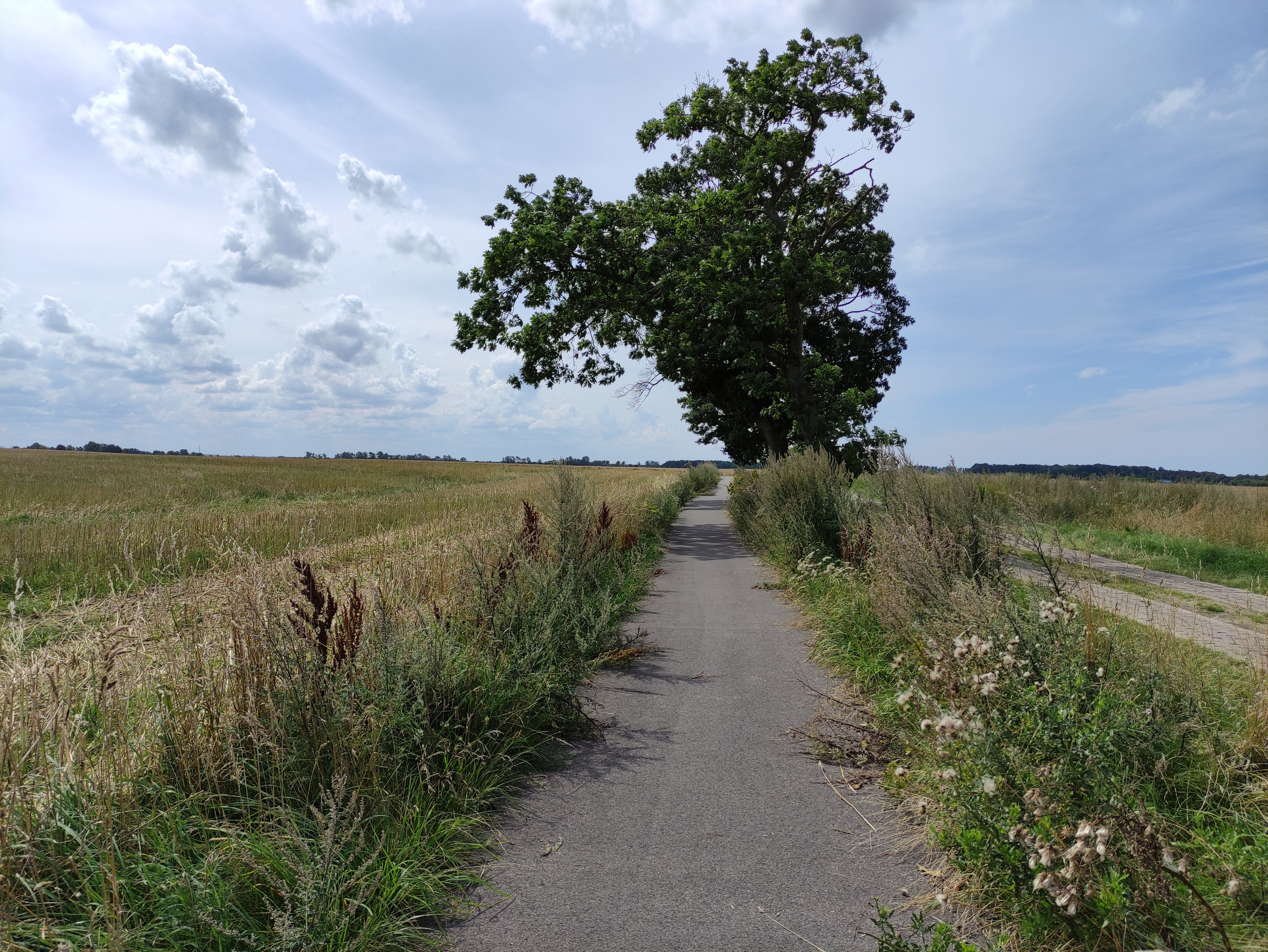 Aber erst einmal von vorn: Nach einem Ruhetag in Ueckermünde – Bellin ging es dann ohne Fähre einmal um das Stettiner Haff außen herrum, dabei machte ich noch bei einer 1nitetent Unterkunft HeuKate in Zarrentin hinter Anklam halt. Da hier auch der Pilgerweg vorbei führt, haben die Besitzer früher Übernachtungen auf dem Heuboden angeboten, allerdings ist dies nun nicht mehr möglich, da ein Sturm das Reetdach der Scheune komplett abgedeckt hat. Die Enkelin der Besitzer, hat nun deshalb für sie ein Profil bei 1nitetent eingerichtet, da sie selbst wohl mit dem Rad durch Deutschland gefahren ist und das Netzwerk genutzt hat. Die Frau des Besitzers war für längere Zeit nicht da, deshalb hatte der Besitzer etwas Redebedarf und so wurde ich kurzerhand zum Frühstück auf der Terrasse eingeladen :-D. Der Weg dorthin war an dem Tag sehr anstrengend, da die Wege bis nach Anklam sehr herausfordernd waren – ein Schlagloch an dem anderen, super schlechter Teer und Gegenwind – eine Traumkombination. Aber wie ich nun weiß – war das alles nur die Vorbereitung auf den Ostseeküstenradweg in Polen – aber genug gespoilert 😉