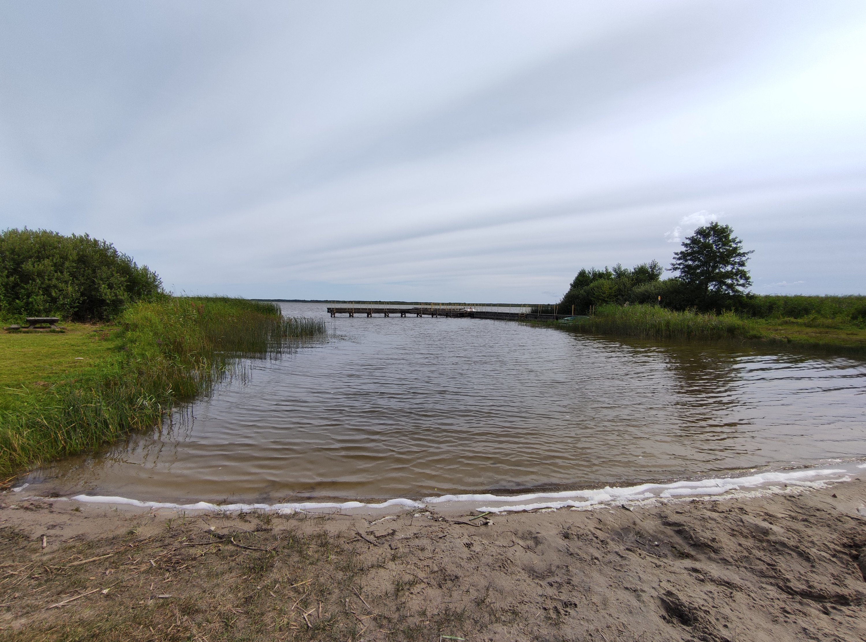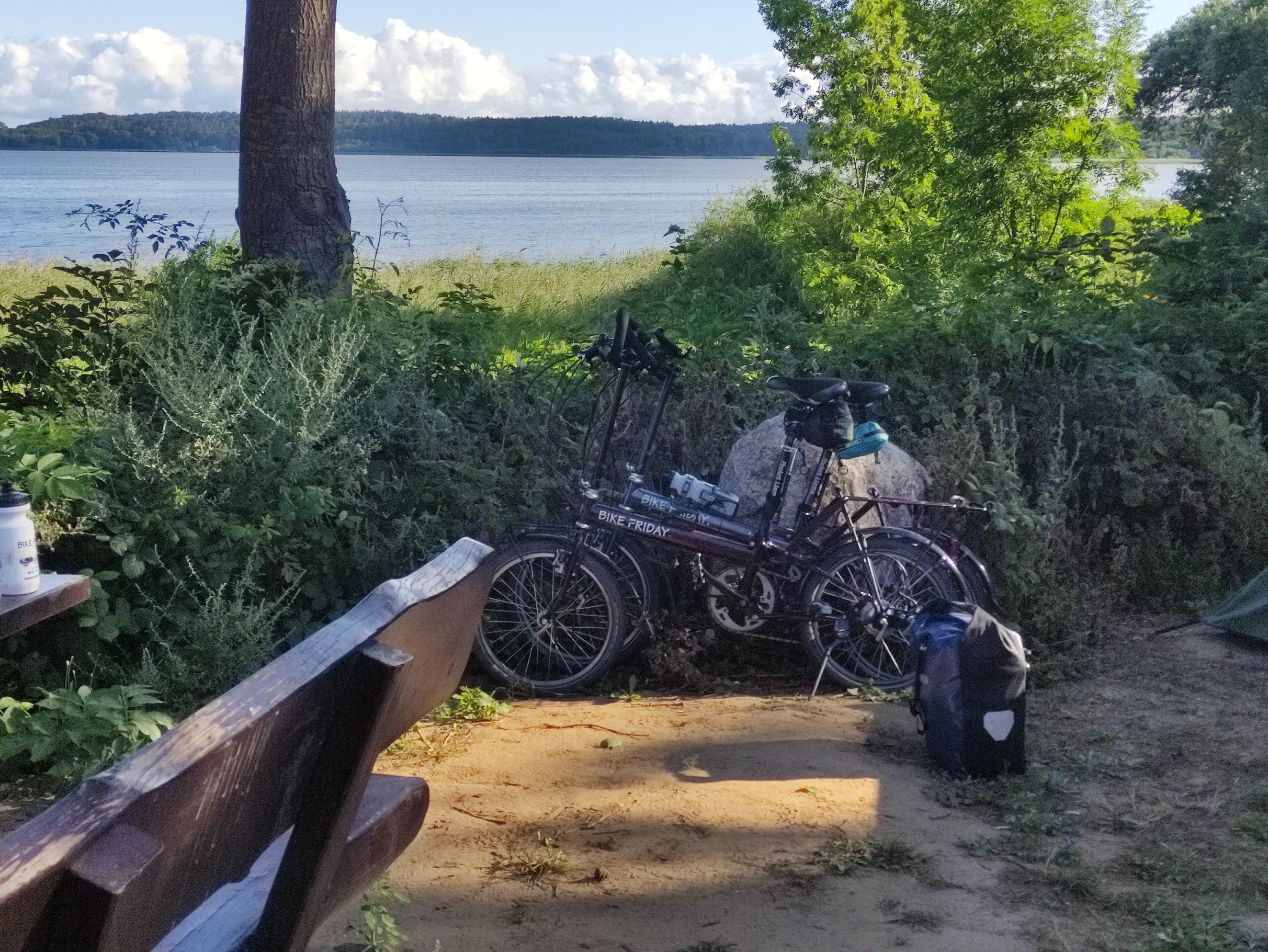 Beim Abholen meiner Pakete traf ich auf zwei andere Radfahrer, bei denen sich herausstellte, dass sie eine ähnliche Route fahren wie ich. Sie wollten auch über den Ostseeküstenradweg nach Litauen. Wir quatschten eine ganze Weile und tauschten uns übers Radreisen aus und ich konnte den beiden noch die App „mBDL“ für das Wildcampen in Polen empfehlen, was seit diesem Jahr an definierten Stellen in Polen offiziell erlaubt ist.