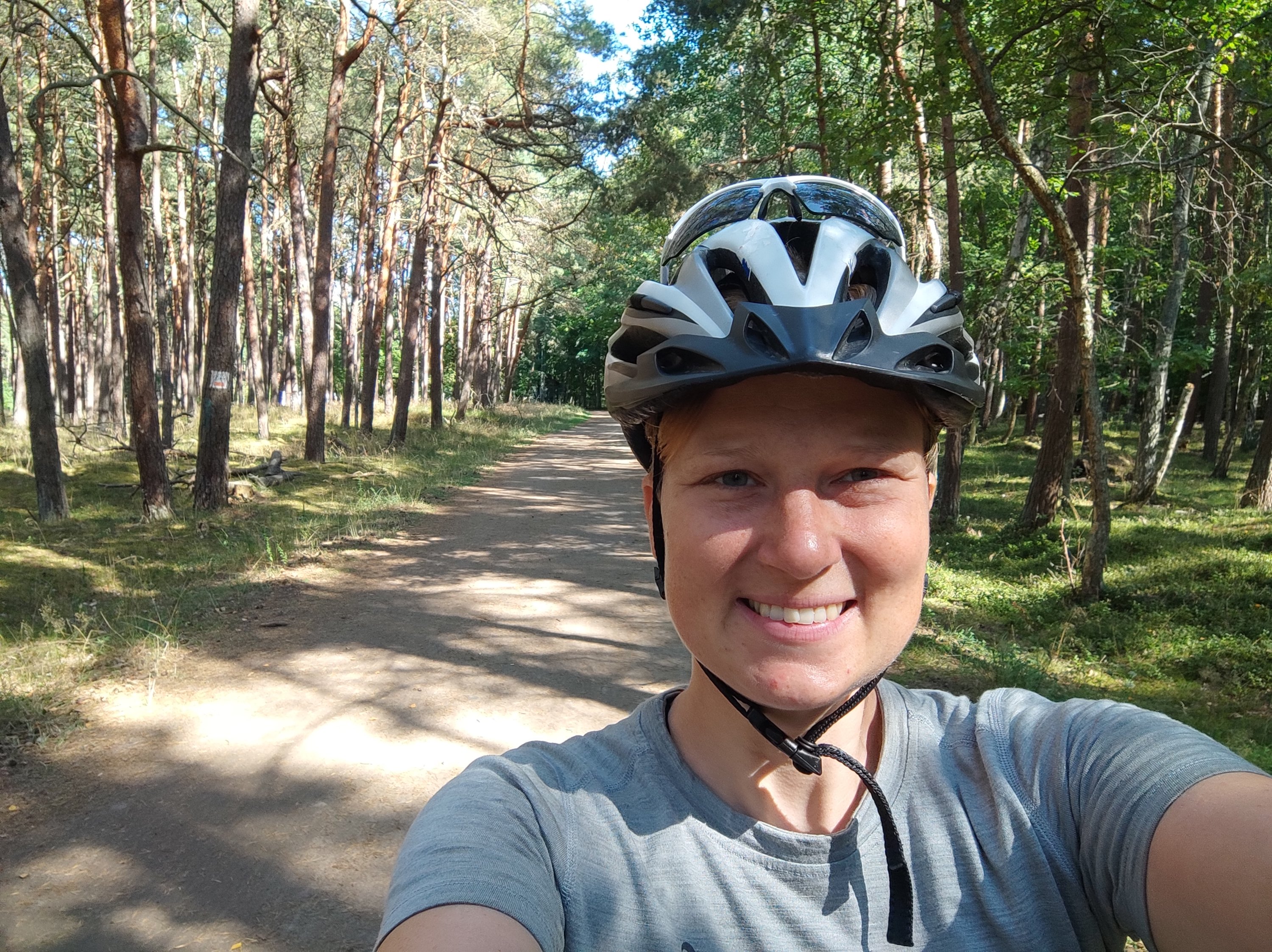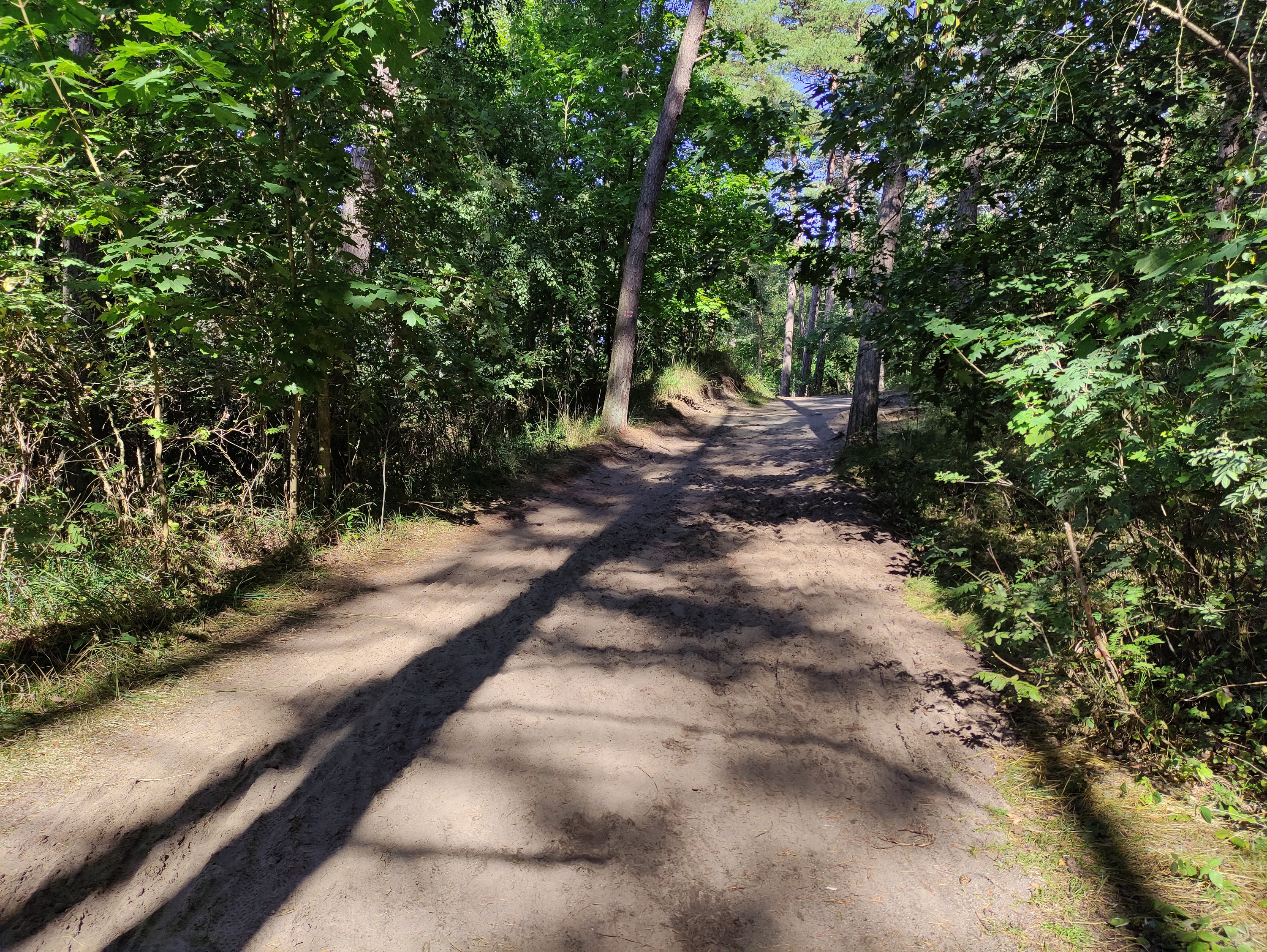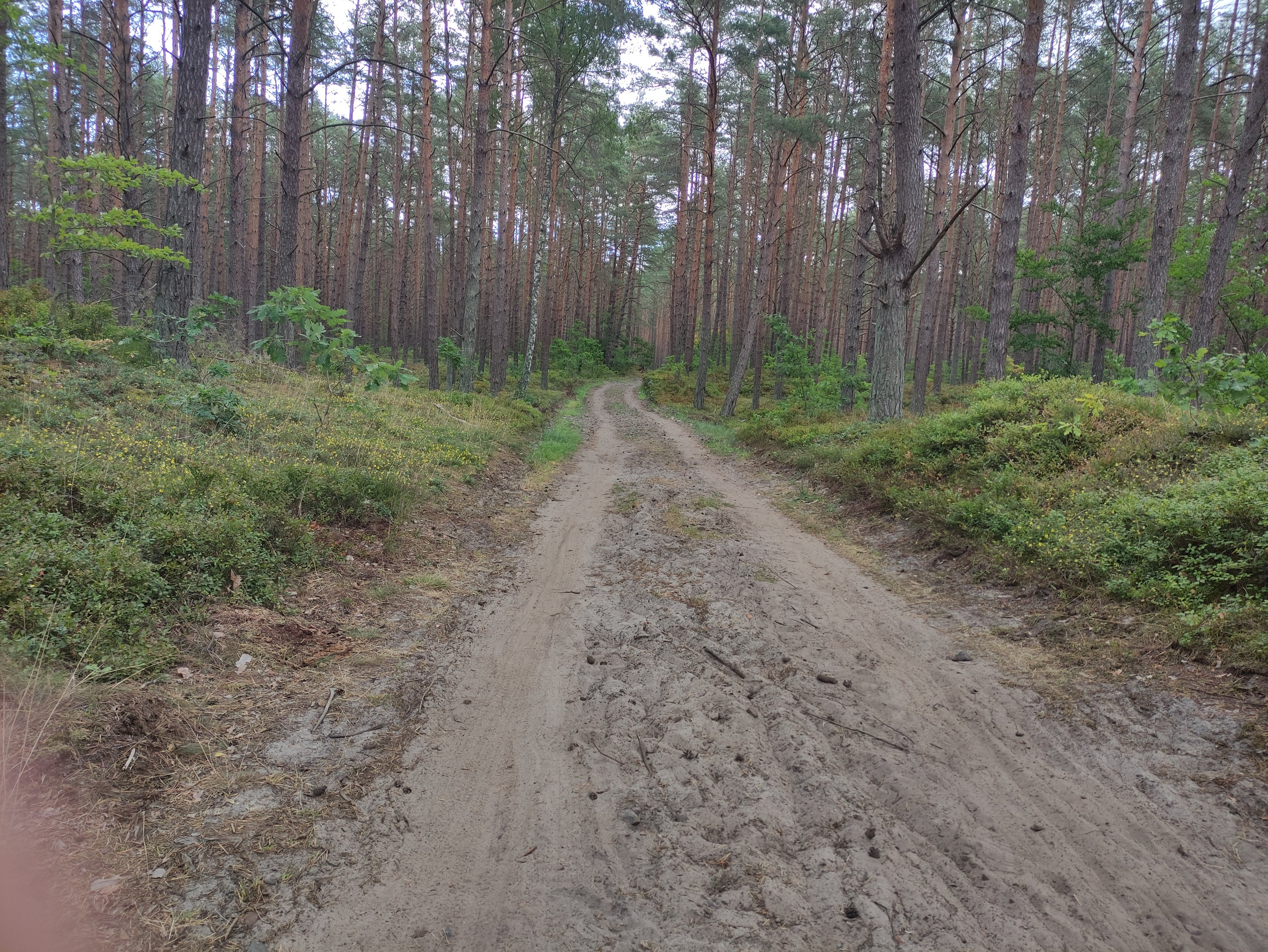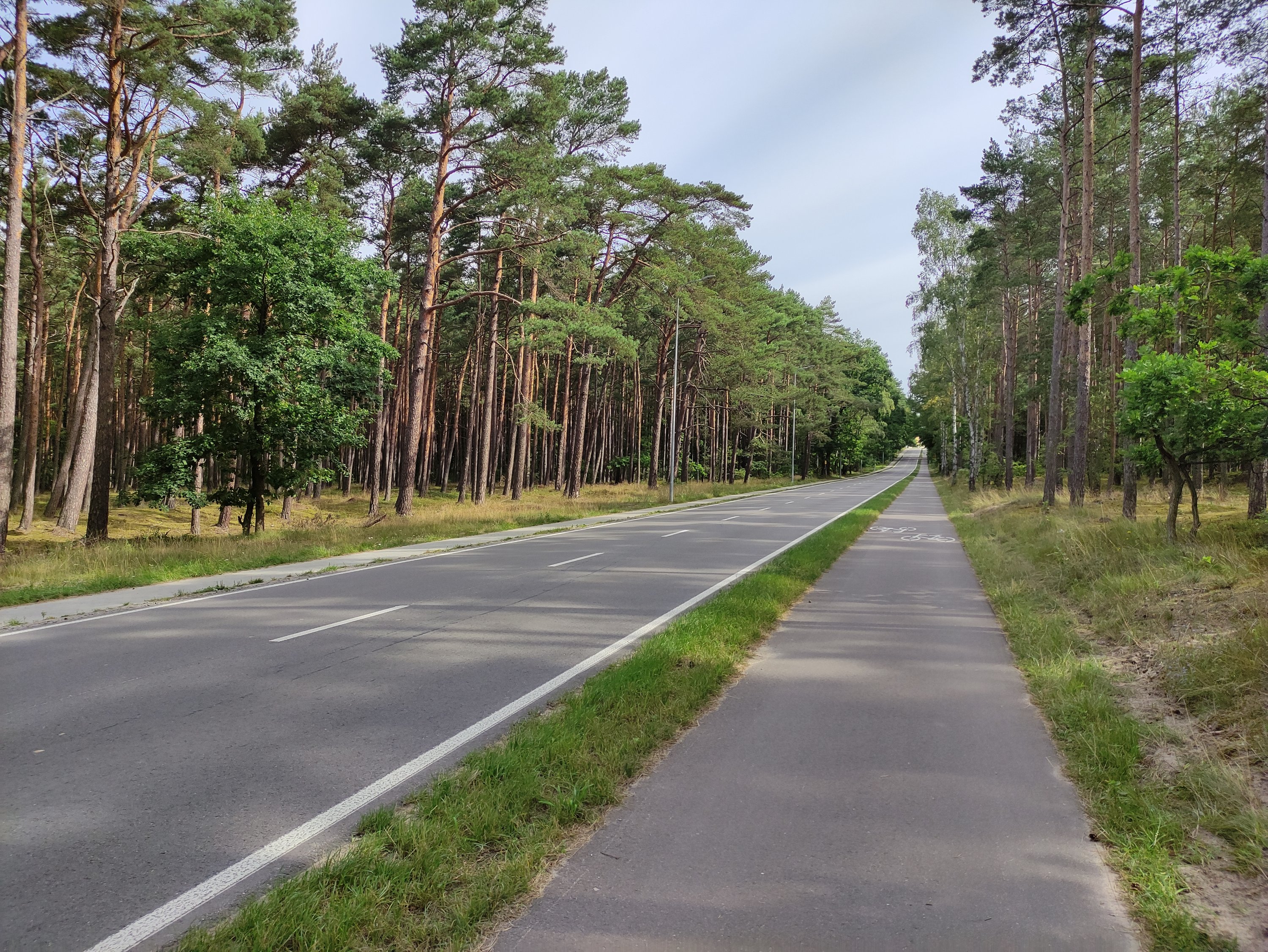 Also ich muss schon zugeben, dass ich doch etwas nervös war, nachdem mich die Fähre auf dem polnischen Festland abgesetzt hatte. Im Vorfeld hatte ich bei meinem Recherchen gelesen, dass man keine Radwege wie in Deutschland erwarten darf – allerdings stammten diese Berichte auch teilweise aus den Jahren 2011 und wie ich auch gelesen hatte, investiert Polen mittlerweile mehr in den Radtourismus und baut immer mehr Radwege aus – wie ich auch in Stettin selbst gesehen habe. Also war ich doch sehr gespannt darauf, was mich nun auf meiner Tour erwarten würde. Die ersten Kilometer wurde man noch in „Sicherheit“ gewiegt, denn ich fuhr auf guten Asphaltwegen – bis der Radweg in den Wald führte. Da fing das Abenteuer so richtig an 😀 Am Eingang sammelten sich nun schon einige Radfahrer – manche mit Kinderanhänger – , die überlegten, ob sie den Weg wirklich fahren sollten. Denn es erwartete uns eine Aneinanderreihung von Schlaglöchern, tiefen „Sandgruben“, sehr groben Schotter und das ganze dann teilweise noch bergauf. Auf einmal wusste ich für was die Fahrt durch die Uckermark gut war 😀 Ein gutes Training!