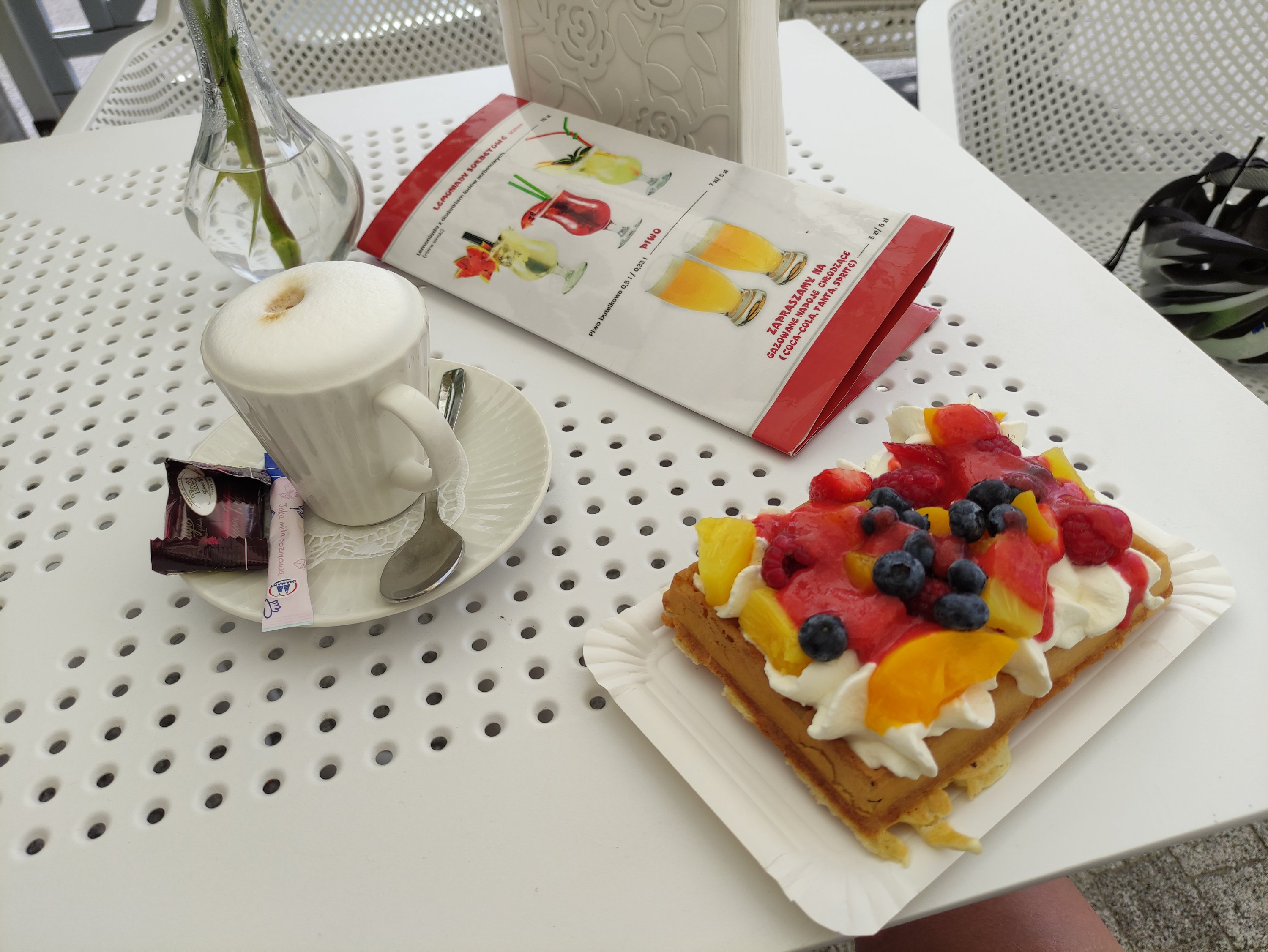 Die Versorgung mit Trinken und Essen entlang des Weges ist durch die vielen Touriorte überhaupt kein Problem. In jedem Ort gibt es kleine Supermärkte, aber auch Restaurants, Cafés und Bäckereien. Aber auch kleine Dörfer abseits der Küste, haben sehr oft einen super kleinen Lebensmittelladen und oft stehen am Wegesrand auch kleine Obst- und Gemüsestände. Was es hier eigentlich in jedem Café zu Essen gibt, sind Waffeln. Waffeln in jeglicher Kombination: mit Eis, mit Früchten, mit Sahne, mit Puderzucker, mit Soßen…ich glaube es gibt nichts, was es nicht gibt. 🙂 Und im Vergleich zu Deutschland, ist in Polen wirklich günstig – selbst in den Touriorten, sodass ich abends eigentlich gar nicht mehr koche, sondern Essen gehe. Nur morgens gibt es noch mein Porridge, da es so ein richtiges Frühstück wie wir es kennen mit belegten Brötchen hier beim Bäcker nicht gibt. Das müsste man sich das selbst zusammenbauen aus Sachen aus dem Supermarkt und Brötchen vom Bäcker und dafür bin ich zu faul 😀 Und wenn ich morgens schon mit Kuchen und Süßkram anfange, muss ich das den ganzen Tag durchziehen, um genug Energie zu haben – das ist auf Dauer glaube ich auch nicht so gesund.