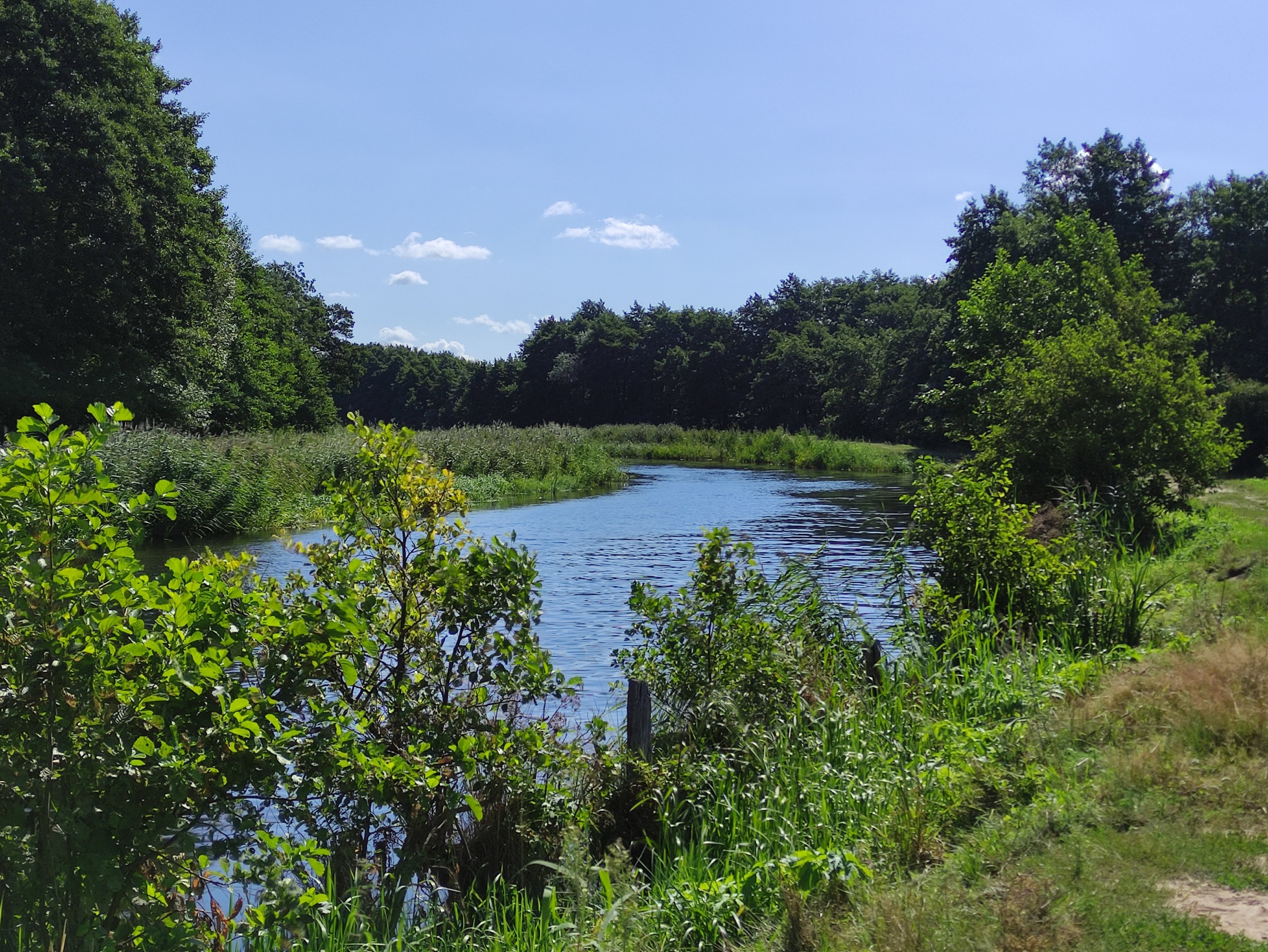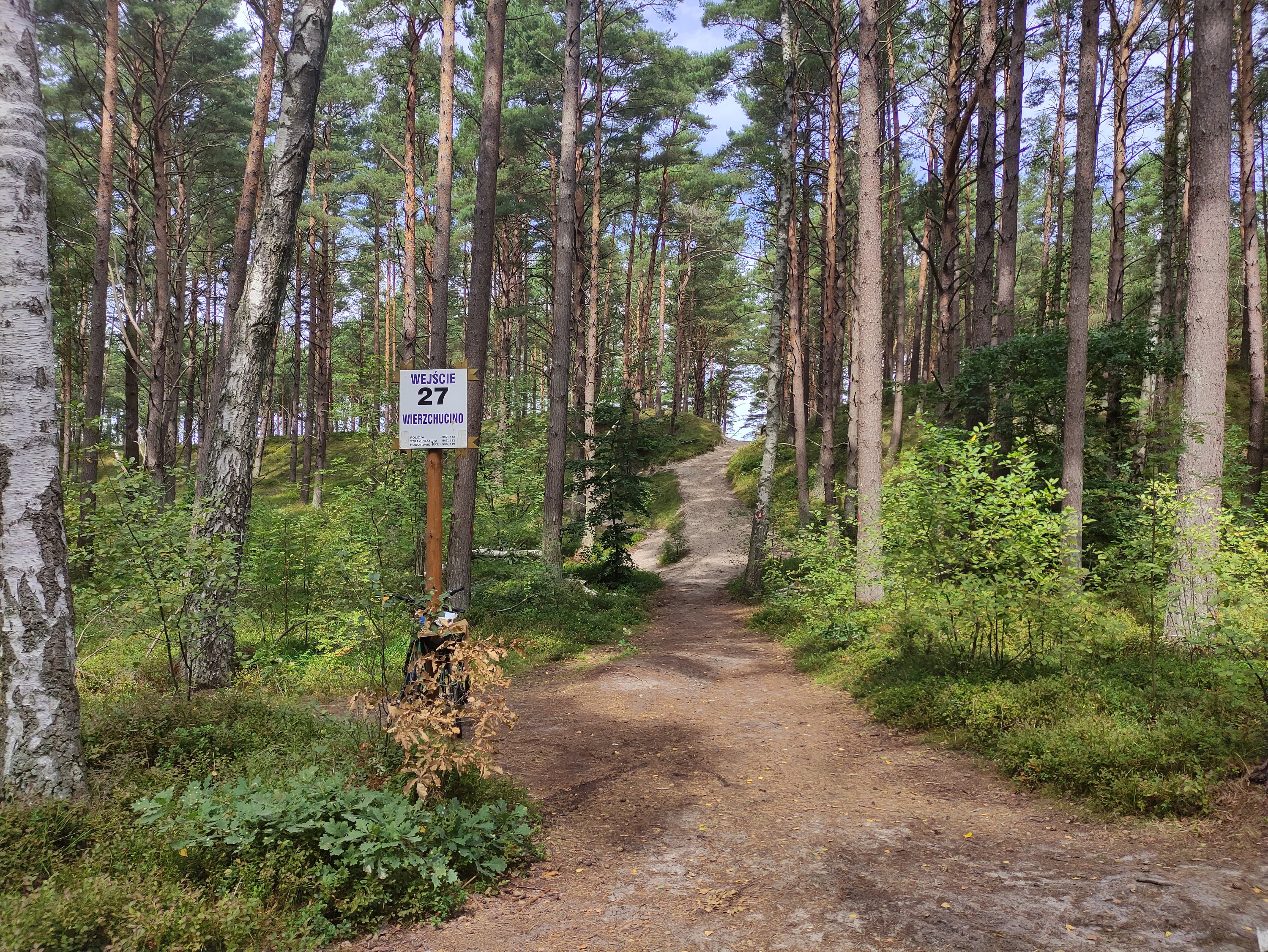 Nachdem ich einige wenige Kilometer über Dörfer gefahren bin, schaute ich etwas überrascht, als ich in einem Wald wieder das Eurovelo 10/13 Schild entdeckte, obwohl dieser dort laut Karte gar nicht sein sollte. Die Zeichen führten wieder zurück zum Ostseeküstenradweg und ich überlegte, ob ich Ihnen wirklich folgen sollte. Da aber bisher die EV10/13 Abschnitte immer gut waren, fuhr ich wieder zurück zur Route und ich wurde belohnt. Ab jetzt war der EV10/13 ausgeschildert und die Wege entsprechend toll – breite Wege durch den Wald. Und kurz nachdem ich wieder auf der Route war entdeckte ich vor mir auch die beiden polnischen Radfahrerinnen von eben. Wir fuhren ein Stück zusammen und machten im nächsten Ort bei einem Kaffee und einer Waffel Pause – kleine Stärkung nach diesen Strapazen muss einfach sein. Anschließend fuhr ich dann wieder alleine weiter, da ich doch etwas schneller unterwegs war als die beiden. Die Etappe verlief weiter auf guten Waldwegen und nach ein paar Höhenmetern am Ende kam ich an meinem Ziel für den Tag an. Was für ein Tagesetappe. 🙂