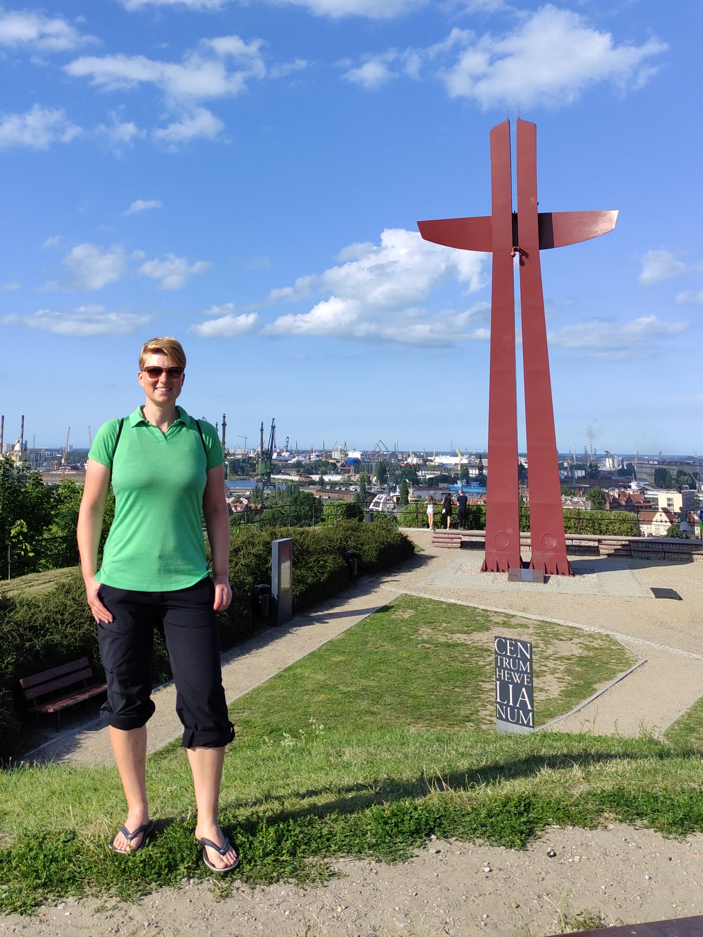 Was ich auch sehr toll an der Dreistadt finde, sind die Stadtstrände. Genial! Und genau dahin ging es dann am Freitag. Anschließend wollte ich die Dreistadt nochmal von oben bewundern und fuhr auf das Aussichtsdeck vom Olivia Star Tower in die 32. Etage – 180m über dem Boden. Oben auf dem Tower befindet sich auch ein Restaurant, das natürlich – wie soll es anders sein – wieder leckere Törtchen anbietet. Bloß gut, dass ich in Polen mit dem Rad unterwegs bin und so die Törtchen und Kuchen in vollen Zügen genießen kann. 😀