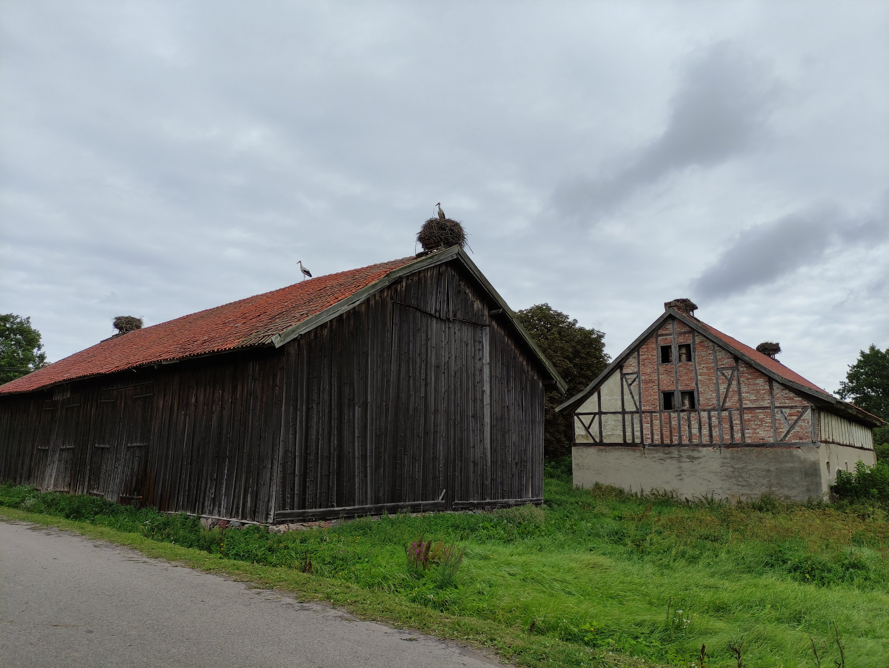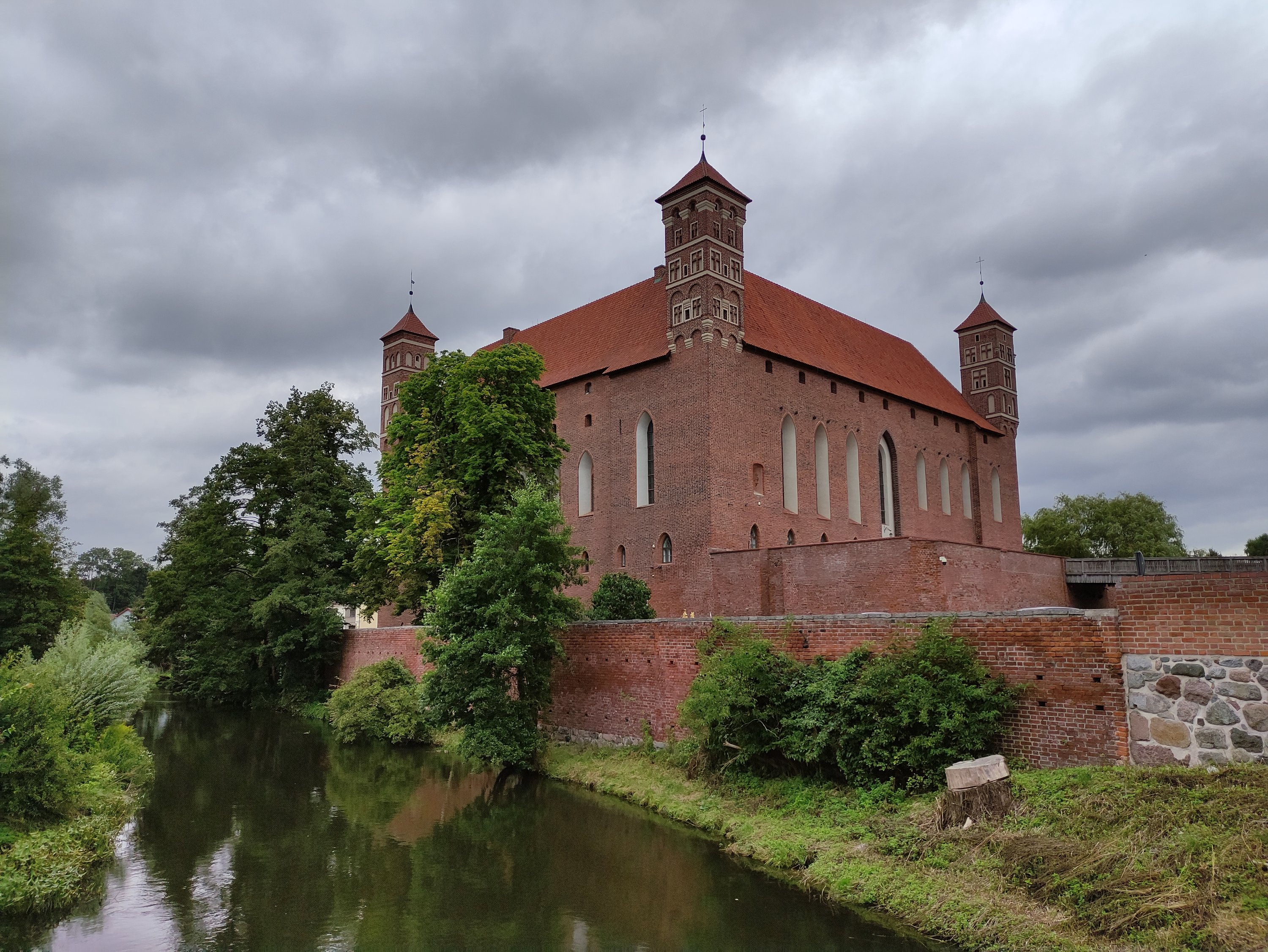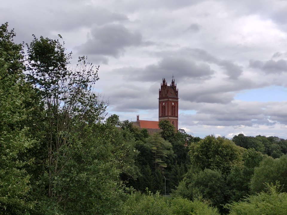 Am nächsten Morgen hatte der Wind nochmal ordentlich zugelegt und so ging es bei starken Windböen, etwas Nieselregen und bei frischen Temperaturen um die 16 Grad nach Lidzbark Warmiński. Die Fahrt war echt nicht angenehm, da ich durch das Radfahren und das hügelige Profil schwitzte, jedoch sobald ich anhielt am Frieren war. D.h. Jacke an – Jacke aus. Und dann kamen an dem Tag auch noch Wege dazu, die den Namen Straße nicht verdienen. Eigentlich war fast kein Teer mehr vorhanden, bei so vielen Schlaglöchern, die sich hier aneinander reihten – ein Ausweichen unmöglich. Eigentlich schade, denn die Route an sich war schön. Es ging immer entlang von kleinen Mooren/Sümpfen und man konnte richtig viele Störche sehen, nur so richtig genießen konnte ich es nicht. Und so kam ich genervt, durchgefroren und durchgeschüttelt am Zielort an und buchte mir spontan eine Unterkunft in einer kleine Pension. Da ich nun wusste, das ein warmes und trockenes Zimmer und eine warme Dusche auf mich wartete, fuhr ich noch eine kleine Erkundungsrunde durch die Kleinstadt.