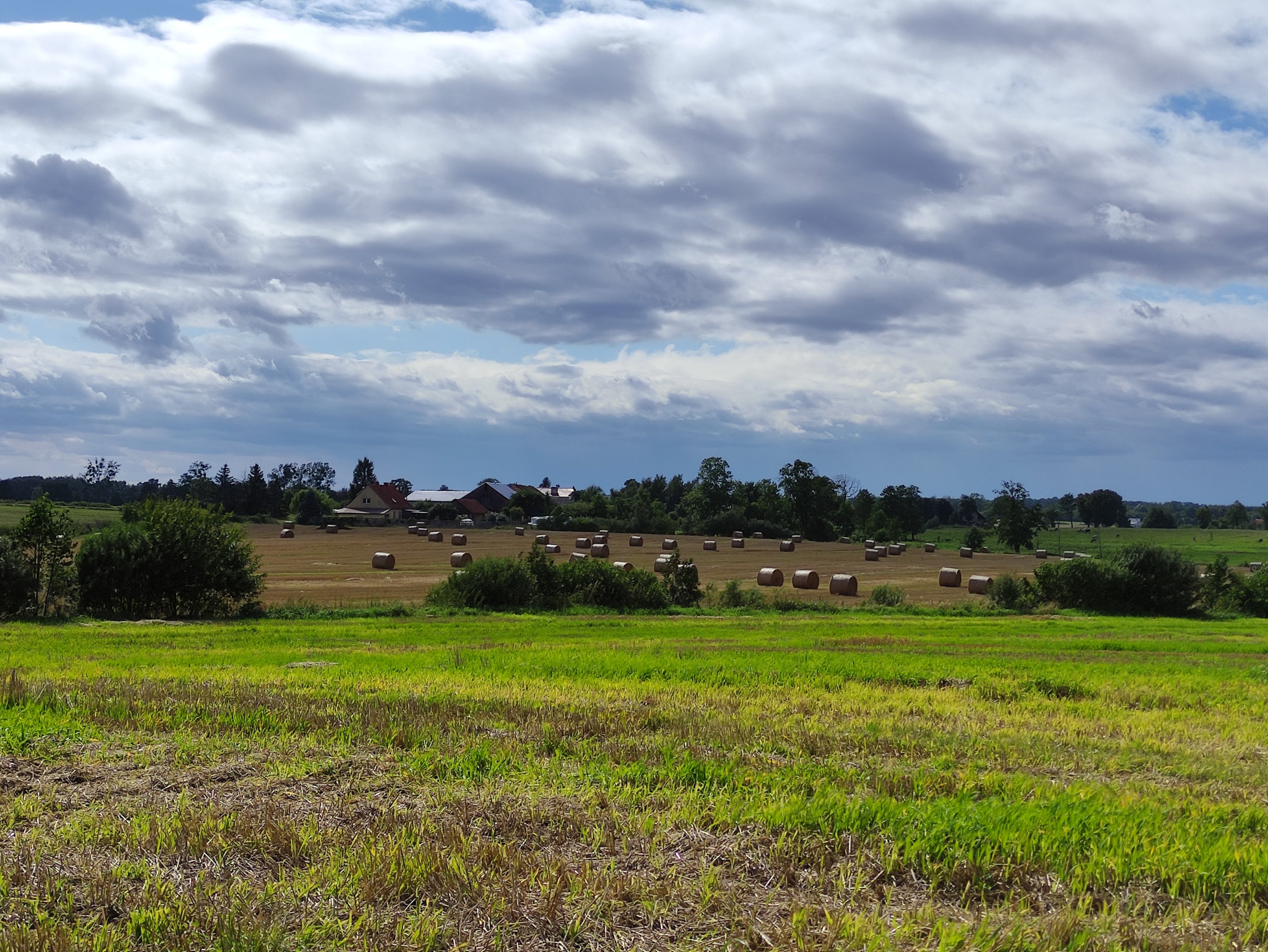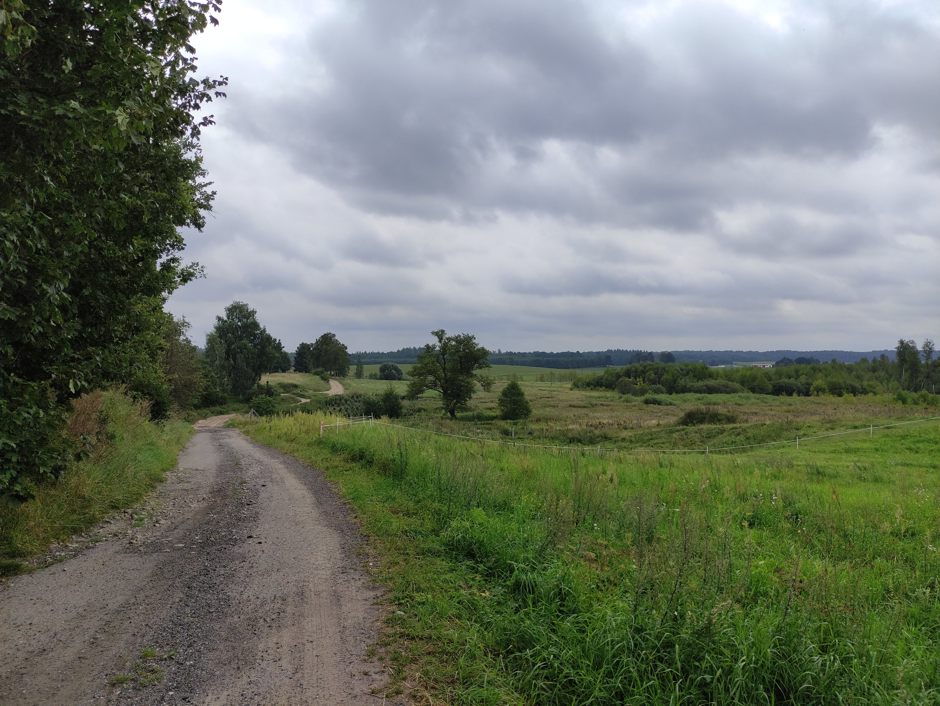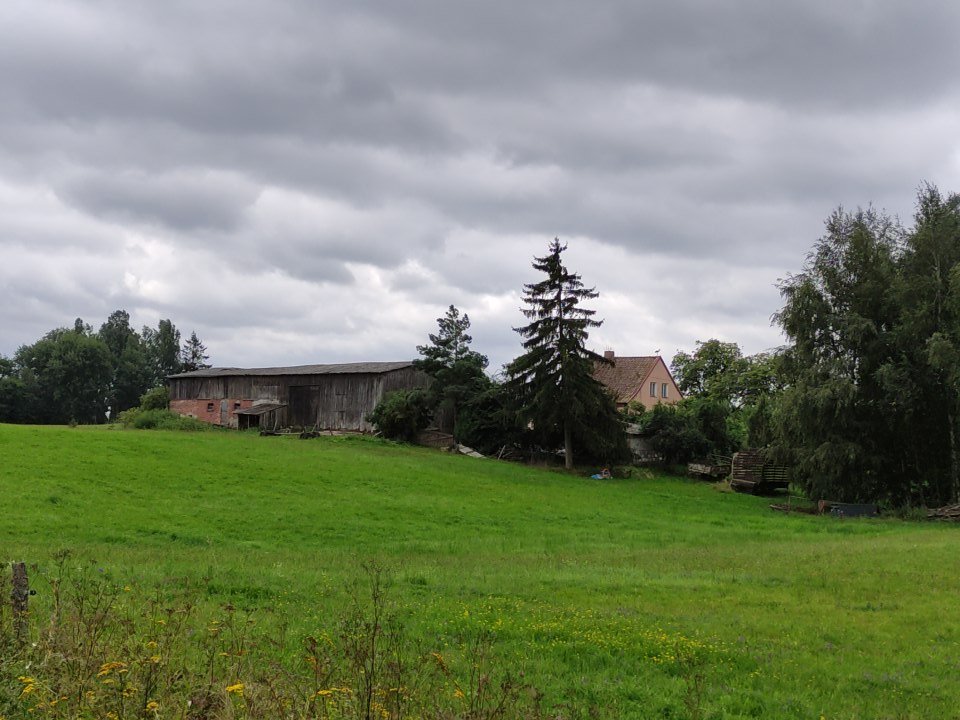Als ich in dem Zielort für diesen Tag ankam, fing es an zu regnen und ich suchte Unterschlupf in einer Bushaltestelle, wo auch schon Ortseinwohner saßen. Leider sprachen diese nur Polnisch, aber ein alter Opa versuchte mir trotzdem die Richtung zu erklären, wo ich den Campingplatz finde – zu mindestens glaube ich das, denn die Richtung, die er mir mit Handzeichen zeigte, war die gleiche, die mir meine Karte sagte. An dem Campingplatz angekommen, schaute ich nicht schlecht, als ich an den Nummernschildern sah, dass hier nur deutsche Camper waren – später gesellten sich auch noch ein paar Polnische dazu. Der Campingplatz war eine Wiese auf dem Grundstück eines älteren Herrn, denn viele Campingplätze gibt es hier in den kleinen Orten nicht. Oft sind es so Agroturistika Unterfünfte, d.h. Bauernhöfe oder Familien, die Ihren Garten zur Verfügung stellen und teilweise auch noch wenige Zimmer als eine Art Pension anbieten.
