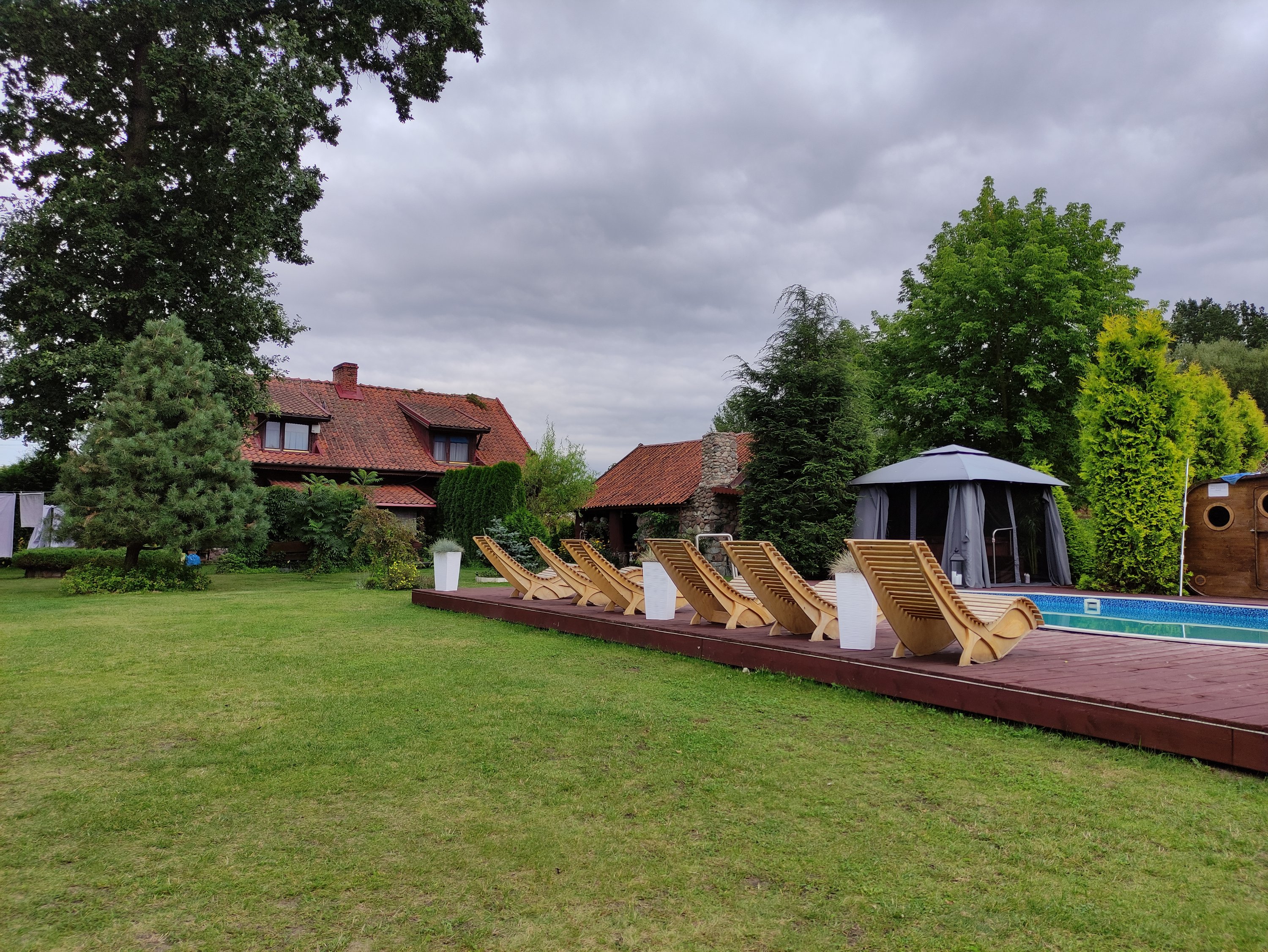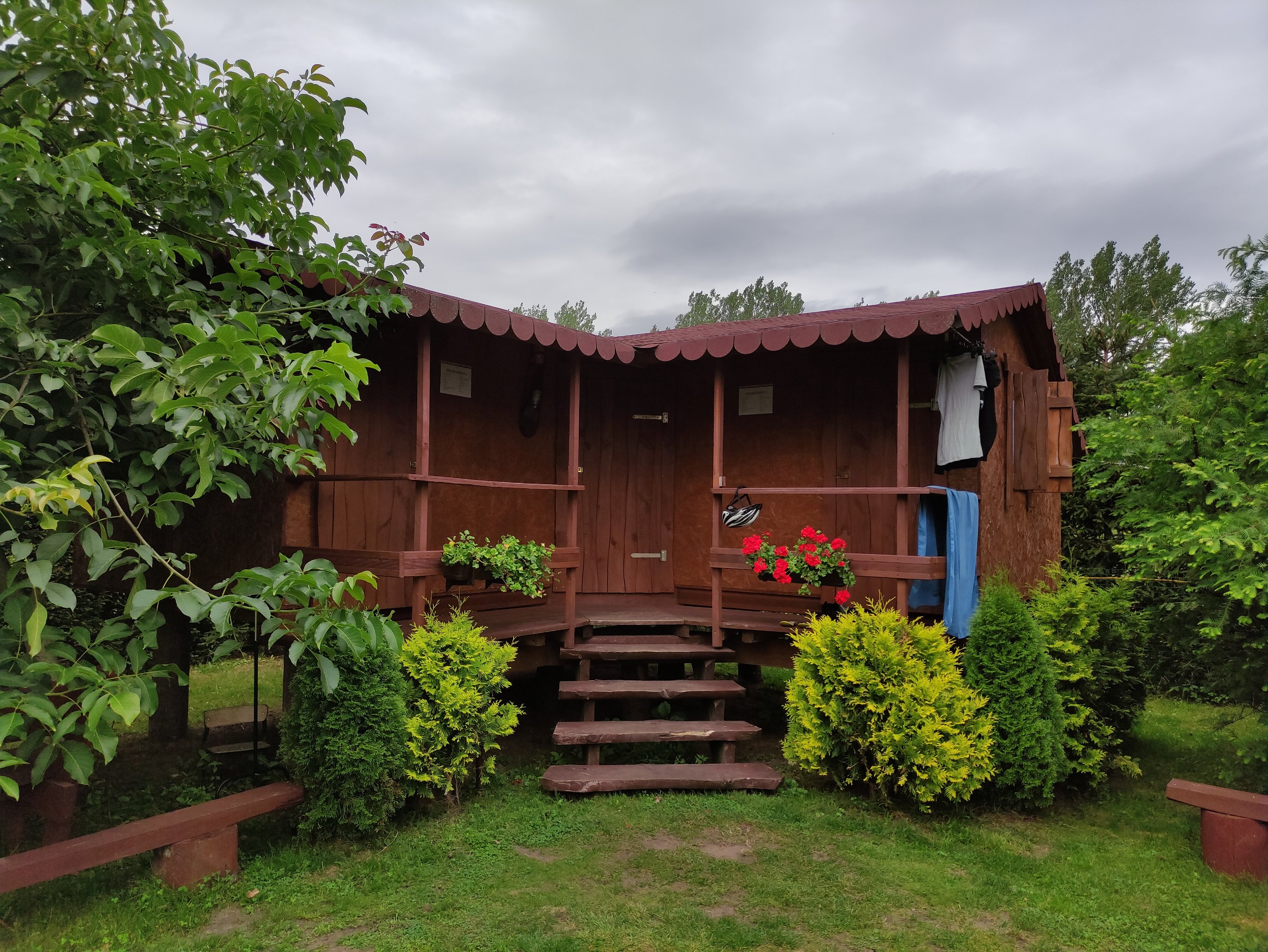 Als Unterkunft hatte ich mir heute etwas außerhalb von Sepopol ein Agritourstik Unterkunft ausgesucht. Die betrieben das ganze schon etwas professioneller, denn neben Zimmern und einer Zeltwiese boten sie auch Betten in kleinen Hütten und in einer Blase an – mit Sauna, Whirlpool und Pool.