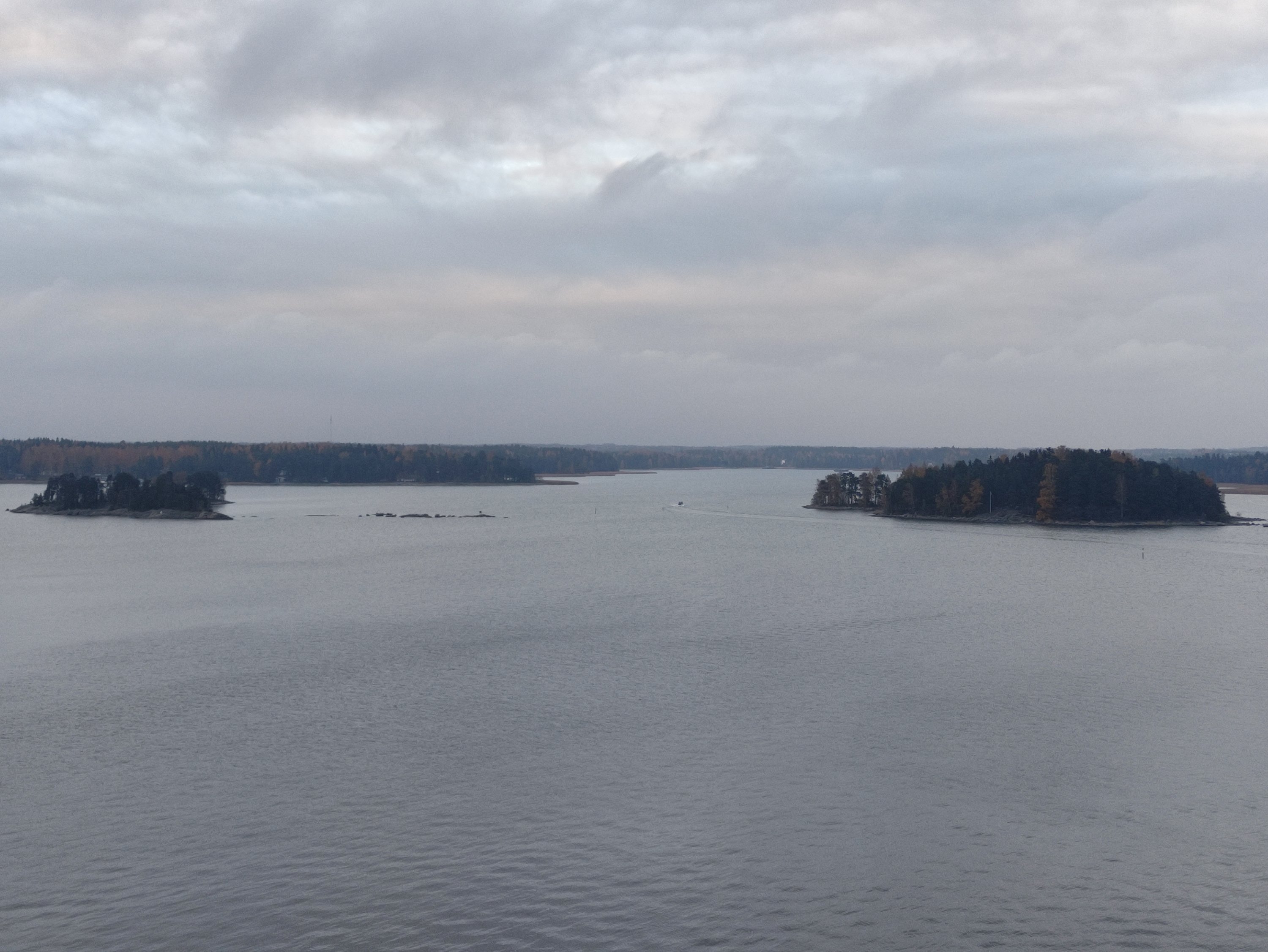 Am Fährhafen musste ich dieses Mal ziemlich lange warten bis ich mit dem Rad aufs Schiff durfte. Normalerweise war ich als Radfahrer bisher immer die Erste. Während ich warten musste, sprach mich Timo an, ein Finne, der seit sehr langer Zeit in Deutschland lebt und mal wieder in der Heimat war. Sein Auto kämpfte mit Startschwierigkeiten, sodass er neben mir separat zu den anderen wartenden Autos platziert wurde, um nicht die anderen Autos zu blockieren. Wir kamen ins Gespräch und am Ende lud er mich für abends noch auf ein Getränk an der Bar ein. Wir verließen den Hafen mit einer Stunde Verspätung, die sie jedoch während der Überfahrt wieder komplett rausgefahren haben.
