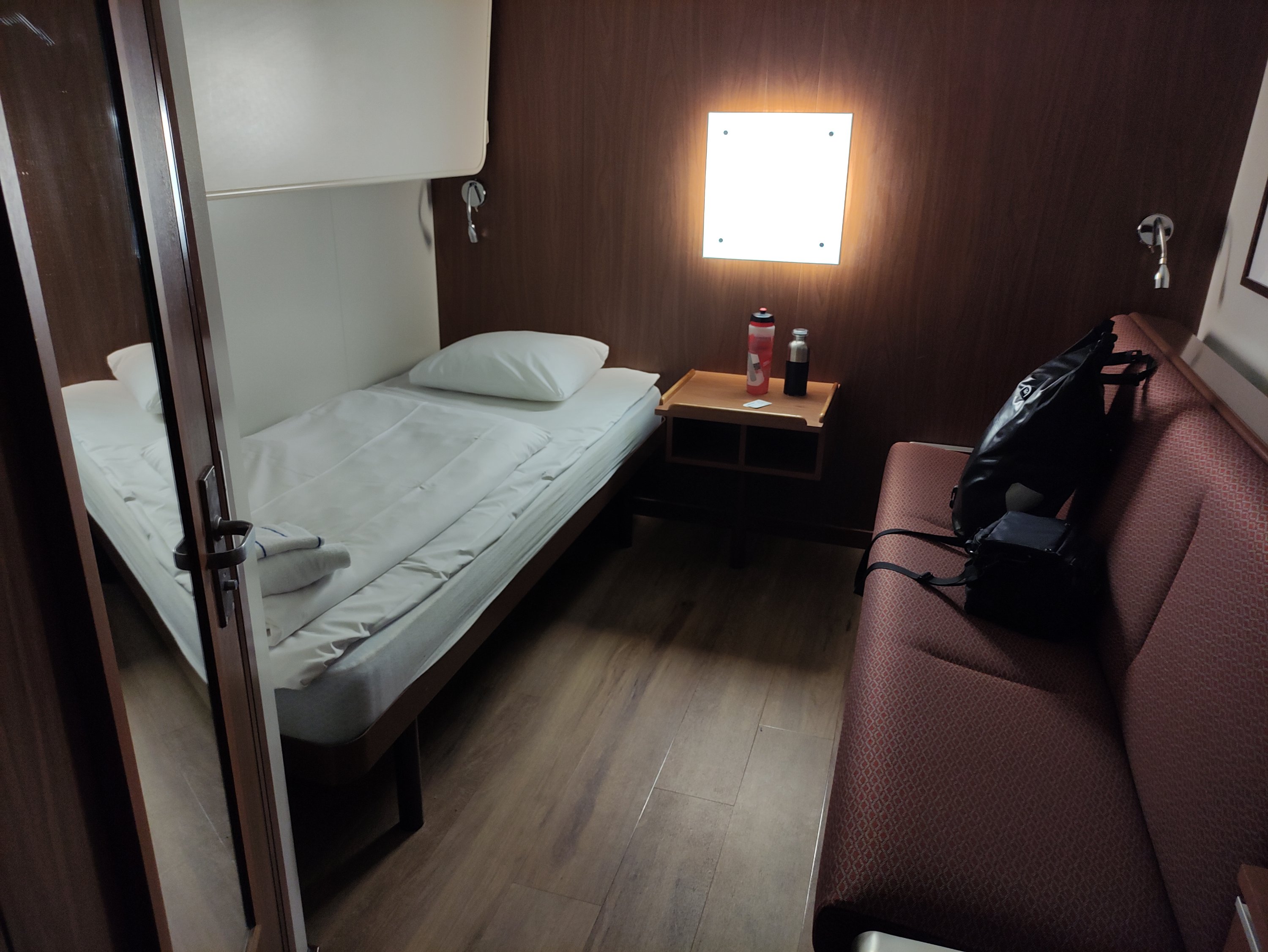 Ich hatte mir ein Bett in einer Kabine gebucht, die ich theoretisch mit bis zu 2 anderen Frauen hätte teilen müssen. Ich spekulierte jedoch beim Buchen darauf, dass es zu dieser Jahreszeit nicht so viele allein reisende Frauen gibt und mein Plan ging voll auf. Ich hatte die Kabine komplett für mich allein. Also zu dritt wäre es in der Kabine auch echt kuschelig geworden. 😉