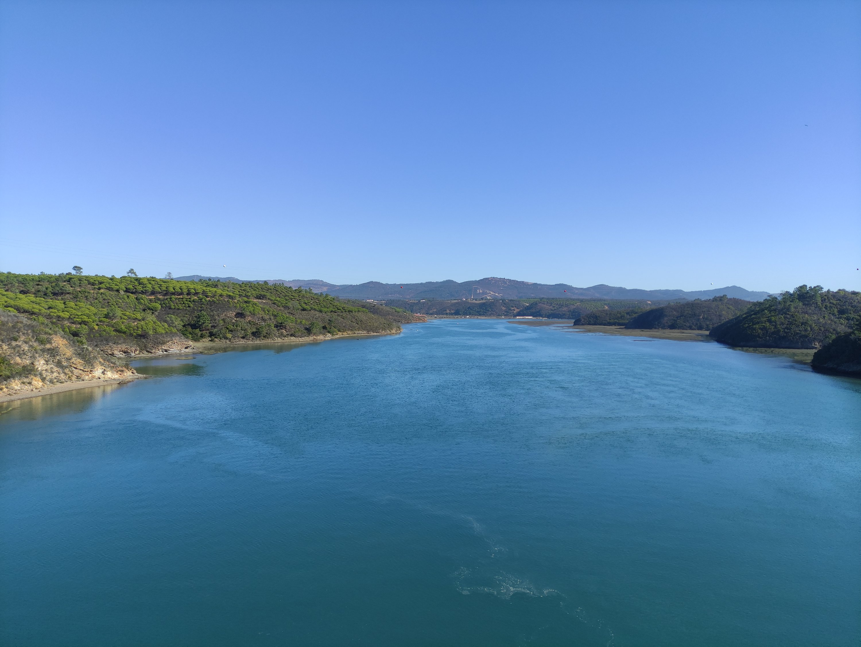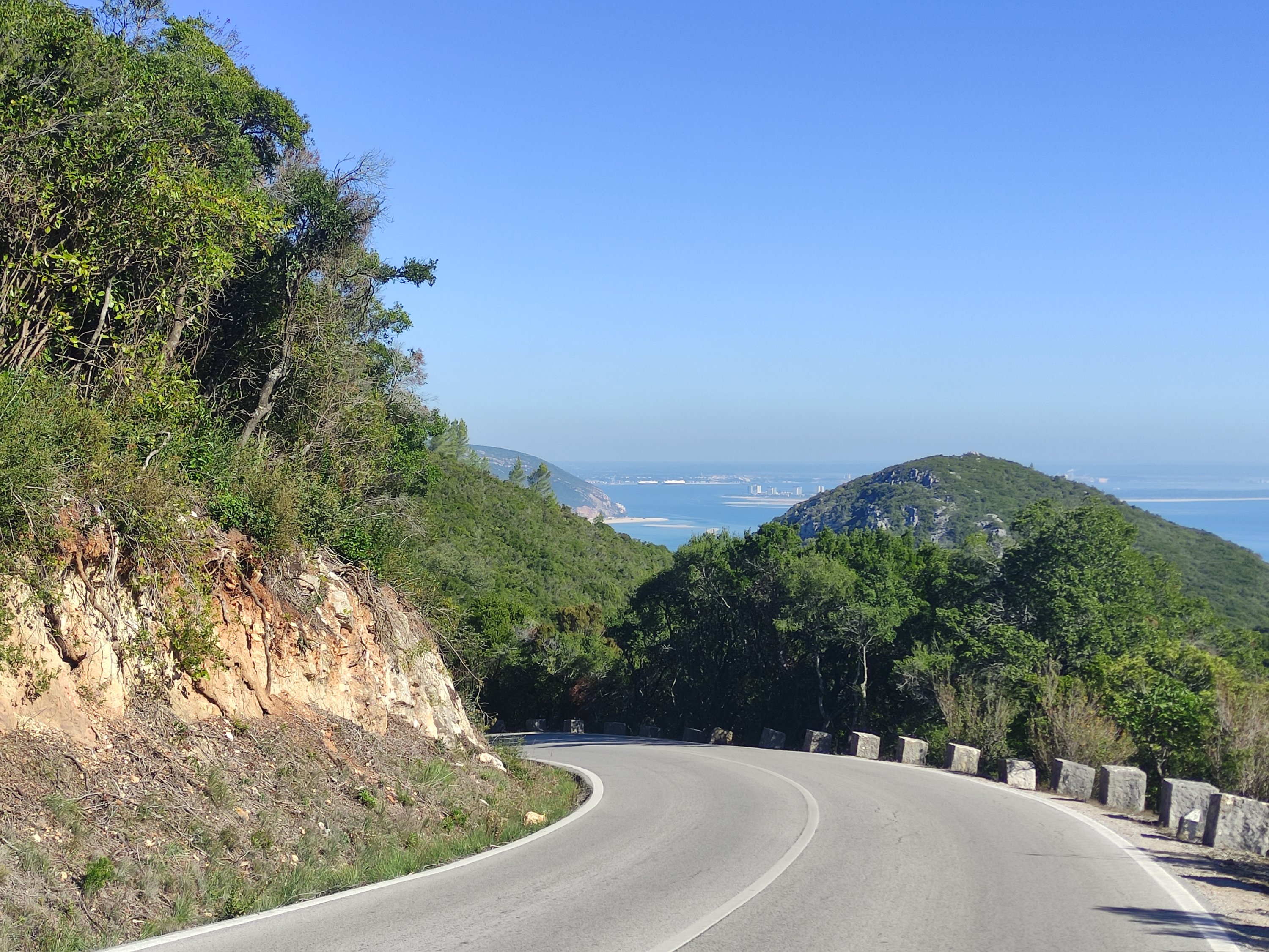 Dann kam der geplante Anstieg und ich war sehr stolz auf mich diesen erfolgreich gemeistert zu haben, da ich Berge von meiner bisherigen Tour überhaupt nicht gewöhnt bin und durch die Pausenwochen auch nicht wirklich mehr in Form bin. Ich genoss die Aussicht von oben, bog an der Abzweigung nach Setúbal ab und freute mich über die grandiose Abfahrt wieder runter zum Wasser.