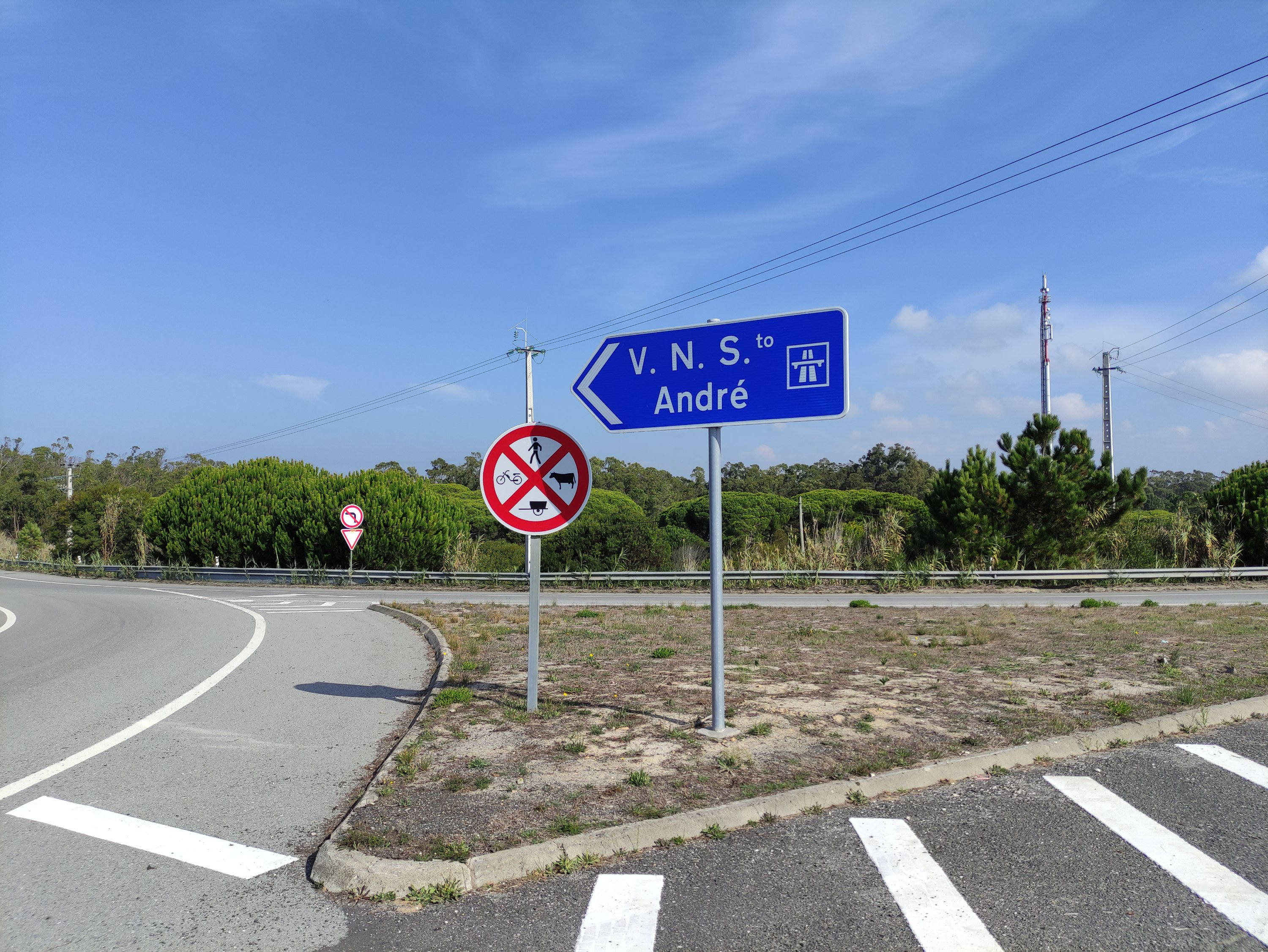 An diesem Tag habe ich dann auch das portugiesische Wort für Umleitung gelernt, denn an dem Abzweig stand ein gelbes Schild mit den Worten „Desvio Setúbal“, allerdings war der andere Wegweiser mit der Aufschrift „Setúbal“ nicht wie bei uns durchgestrichen, sodass ich das Umleitungsschild gar nicht wirklich wahrgenommen habe. Wieder was gelernt. 😉