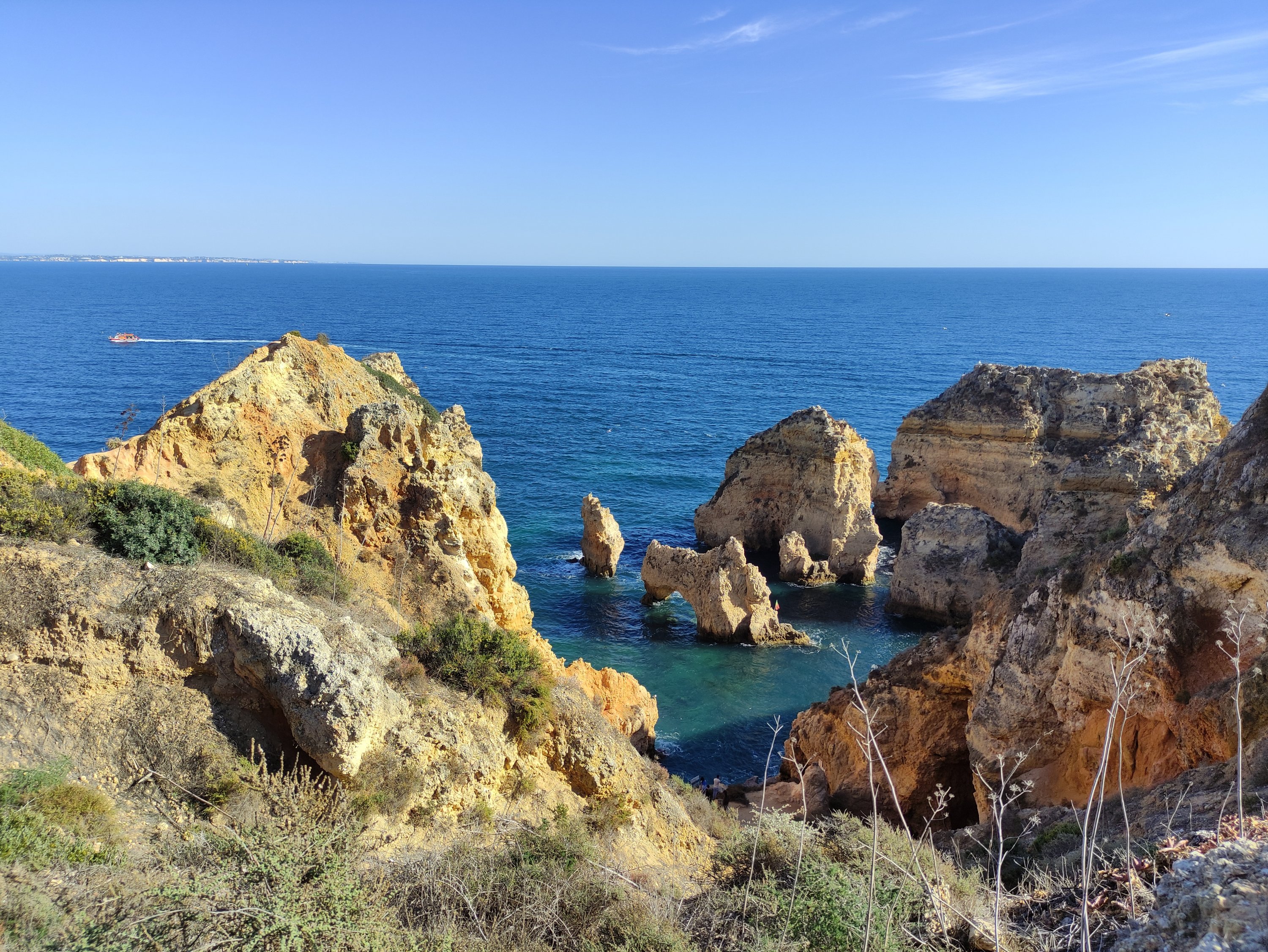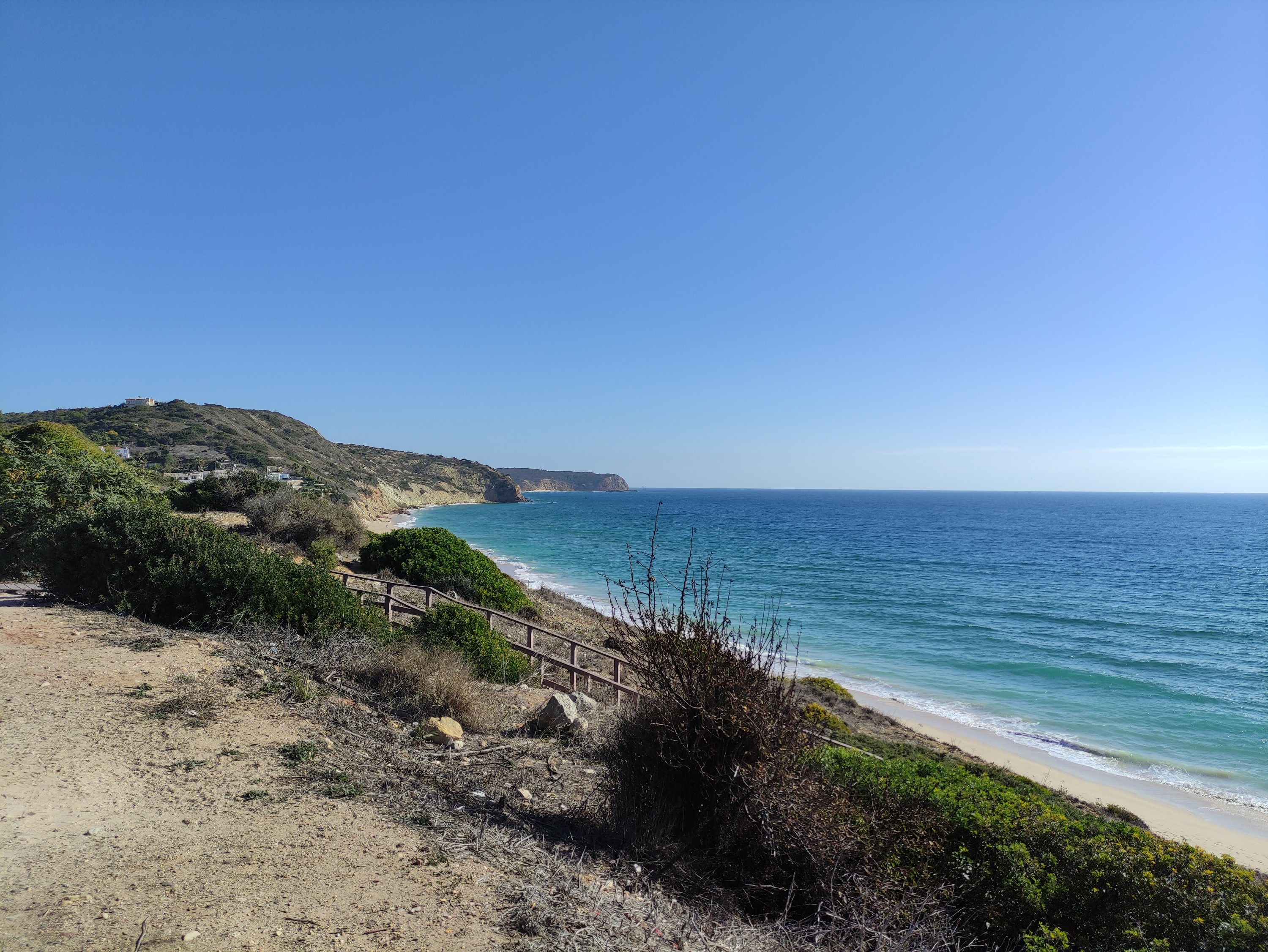 Als ich den Campingplatz am nächsten Morgen verließ, sprach mich gerade beim Losfahren Max aus Frankreich an. Er war aktuell auch mit dem Rad unterwegs. Er ist bereits seit 10 Jahren immer wieder unterwegs und am rumreisen – immer wieder auf eine andere Art: per Van, zu Fuß, per Rad, per Anhalter,… Das Geld für seine Reisen verdient er unterwegs bei Jobs, die er sich vor Ort sucht oder auch zu Hause in Frankreich, wenn er mal wieder in der Heimat ist. Aktuell fuhr er mit einem anderen Radreisenden immer wieder an der Algarve hin und her und wollte sich nun für einige Zeit in Sagres niederlassen. Den Tag zuvor ist er genau die Strecke gefahren, die ich an dem Tag vor mir hatte und er schwärmte mir von der tollen Route entlang der Küste und durch kleine Dörfer vor. Eigentlich hatte ich die Eurovelo Route etwas für diesen Tag angepasst und wollte mehr entlang der Bundesstraße fahren, da die kurze Etappe entlang der Eurovelo Route nach Lagos bzgl. der Höhenmeter sehr knackig war. Nachdem mir Max aber von dem Abschnitt erzählte, entschied ich mich um, und folgte dem EV1.