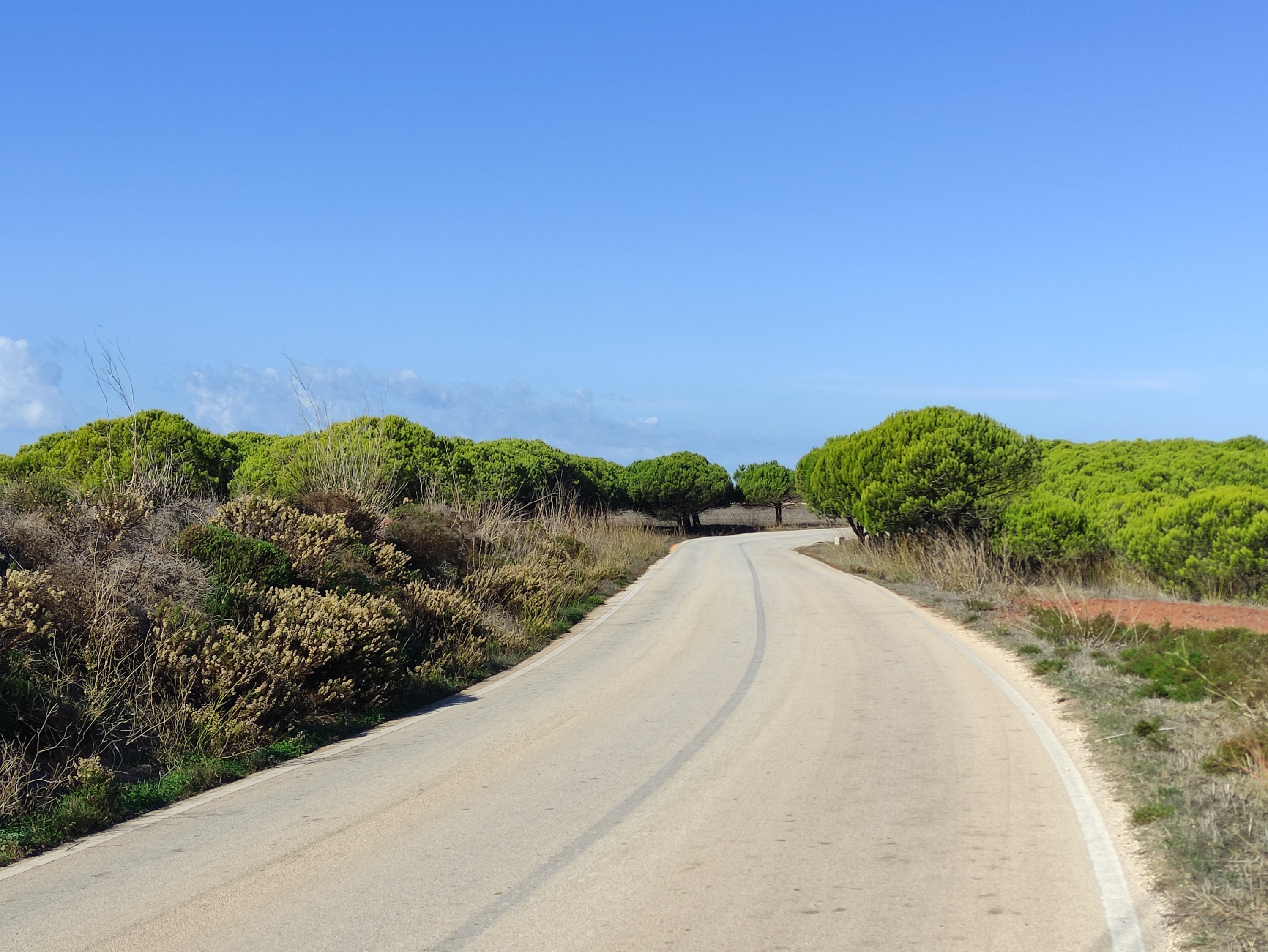 Max hatte nicht zu viel versprochen und nachdem ich erst einmal die Bundesstraße verlassen hatte, ging es über ruhige Nebenstraße und ein paar wenigen Schotterpisten in einem ständigen Wechsel von Anstiegen und Abfahrten bis nach Lagos. Die Höhenmeter bzw. die Steigungen mit bis zu 10% machen mich immer noch fertig, aber es wird langsam besser. So komme ich immer mehr Anstiege im Fahren hoch ohne oben ein Sauerstoffzelt zu benötigen und ich muss demnach immer seltener das Rad den Hügel hoch schieben. 😉