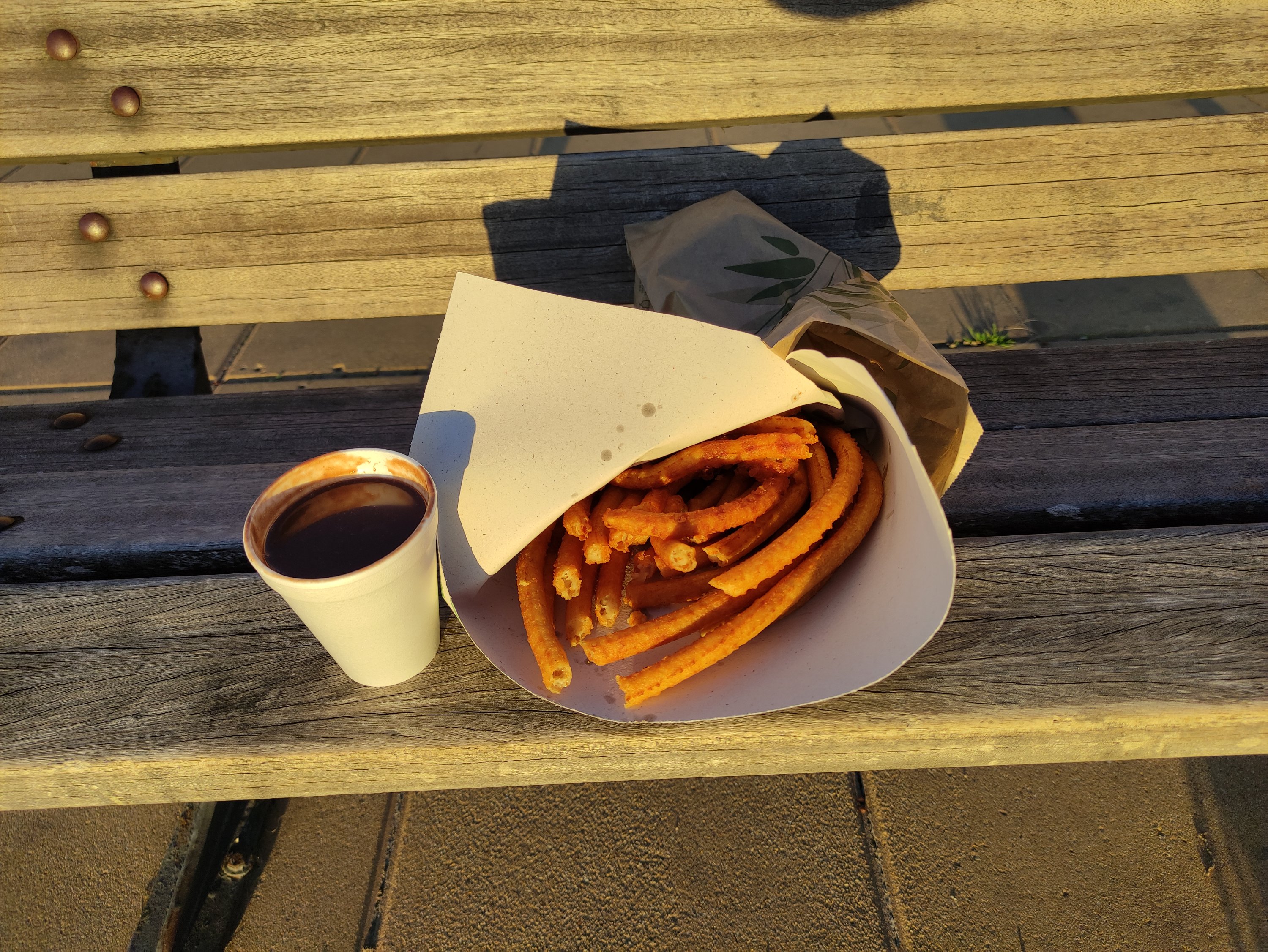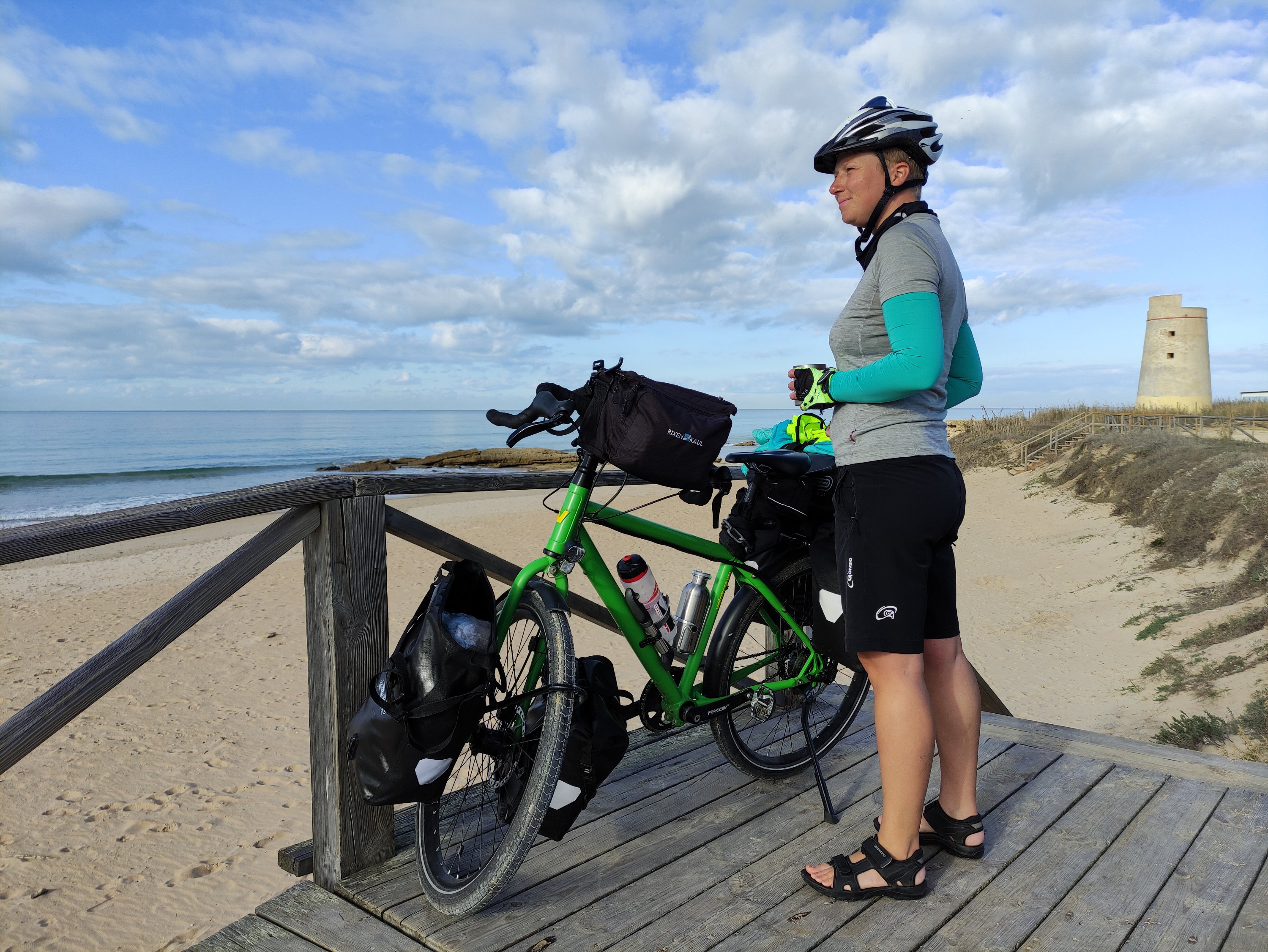 An meinem Ruhetag in Conil de la Frontera, schaute ich mir noch das kleine Örtchen an und machte einen kleinen Spaziergang am Strand. Zum Sonnenuntergang gönnte ich mir noch eine Portion Churros, ein für Spanien typisches frittiertes Gebäck, das man in eine Kakao-/Schokoladensauce taucht. Also eine pure Kalorienbombe, aber egal – ich bin ja mit dem Fahrrad unterwegs. 🙂