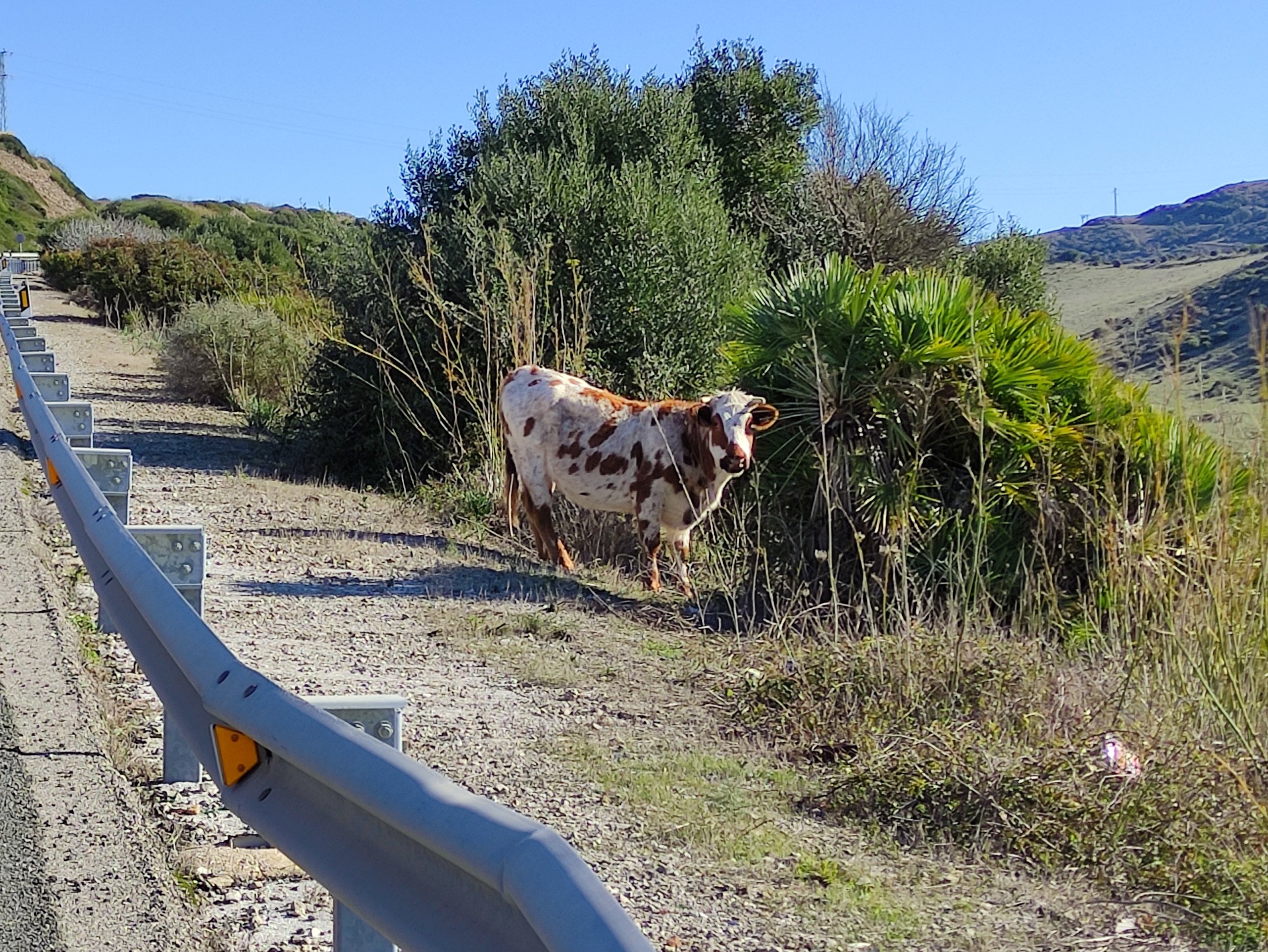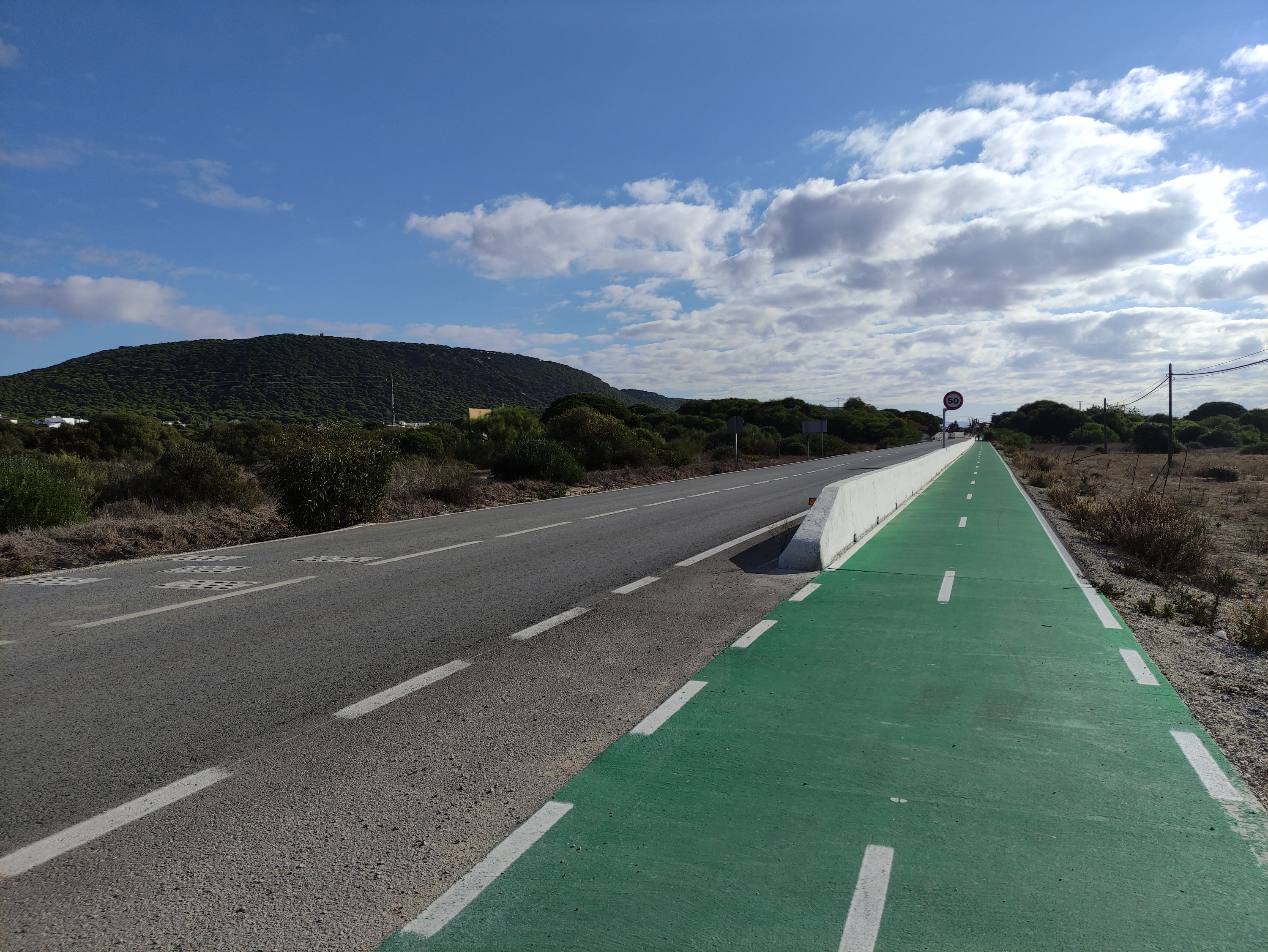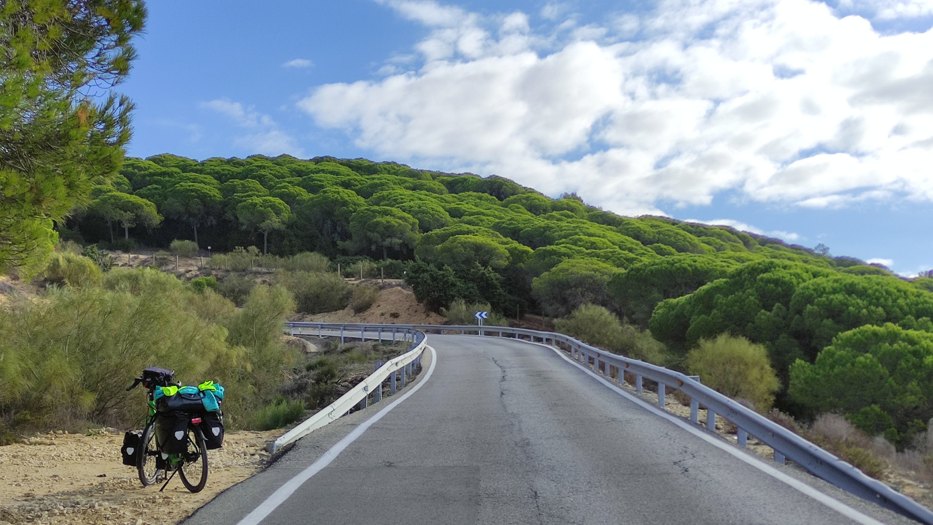Für den nächsten Tag stand mir wieder eine kleine Bergetappe bevor. Es ging direkt in Tarifa los und ich arbeitete mich langsam aber stetig auf dem Seitenstreifen den Berg hoch. Dabei lohnte es sich öfters mal einen Blick über die Schulter zu werfen, denn da eröffnete sich mir ein toller Ausblick auf Tarifa, die Umgebung und das Meer.