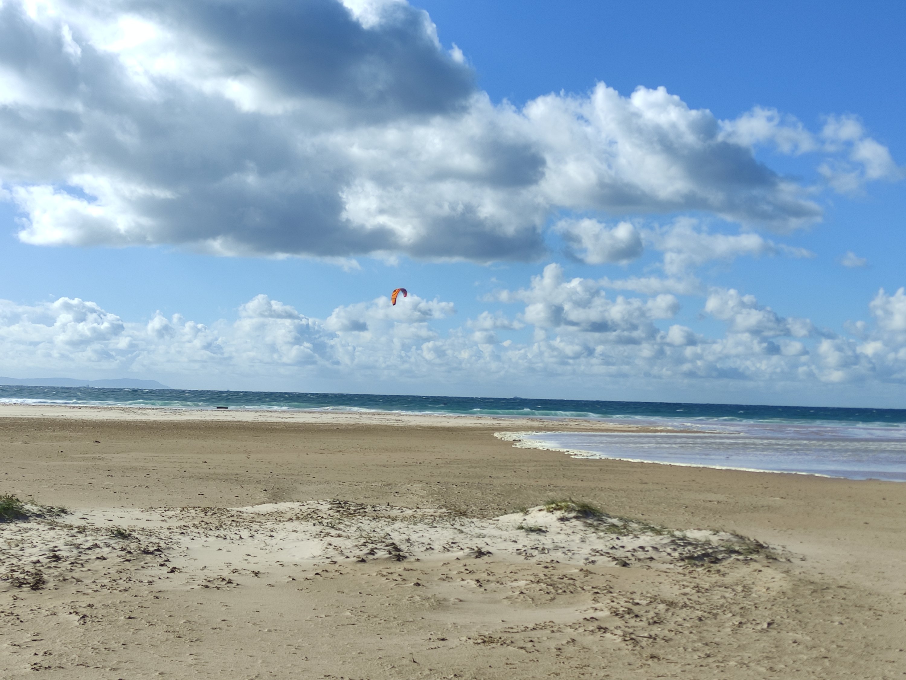 Zurück auf dem Campingplatz machte ich noch einen kleinen Ausflug an den Strand und zur Sanddüne „Duna de Valdevaqueros“. Von der Küste von Tarifa, ist Afrika nur noch ein Katzensprung entfernt. Man kann bei guter Sicht sogar die Gebäude an der Küste auf dem anderen Kontinent sehen.