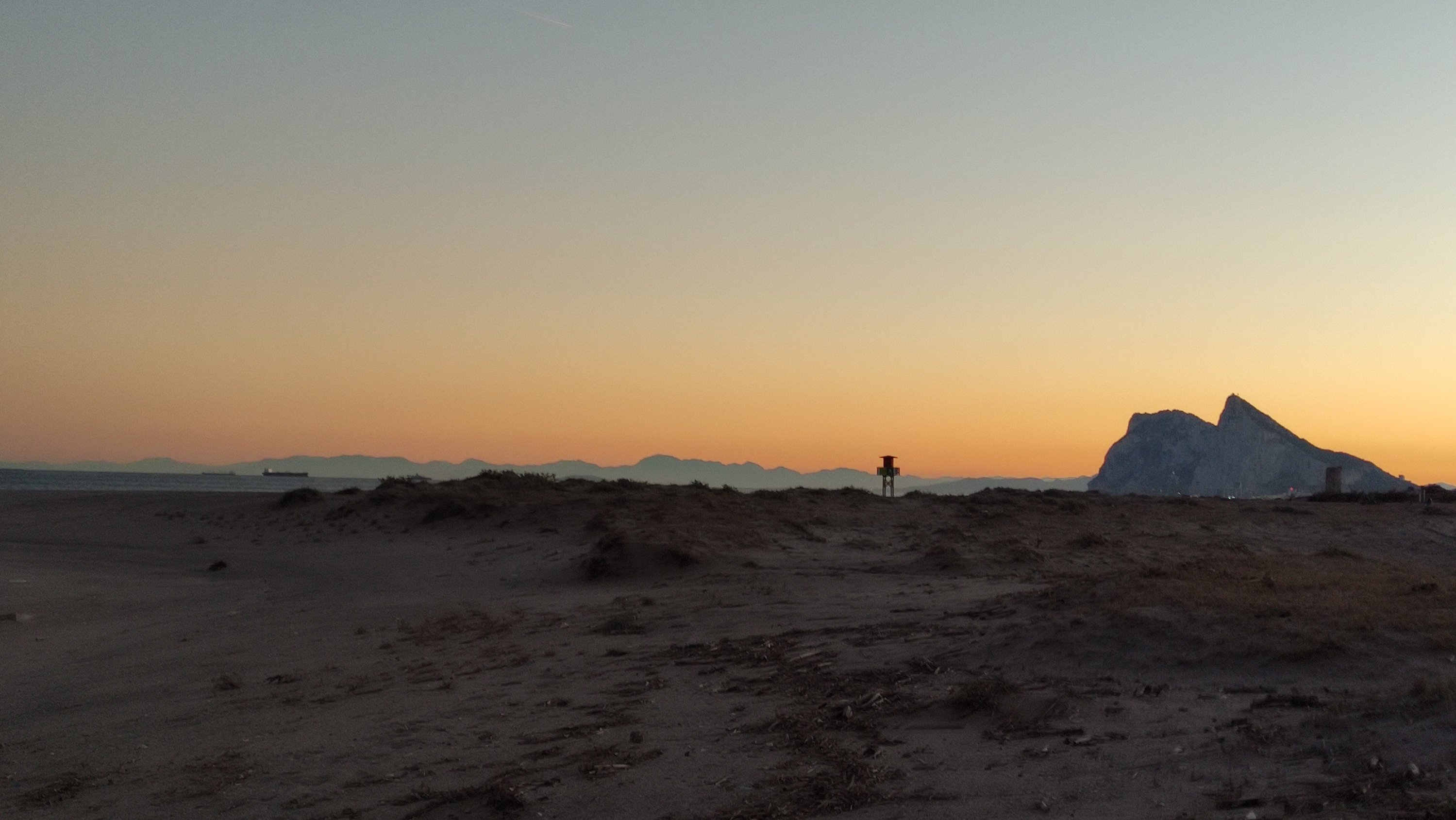 Aber gut, umso schöner war dann der Wildcamping Spot, der total ruhig gelegen war und auch das Mittelmeer, an dem ich nun offiziell angekommen war, war sehr ruhig. Vom Strand aus hatte ich wieder einen tollen Blick auf den Fels von Gibraltar.