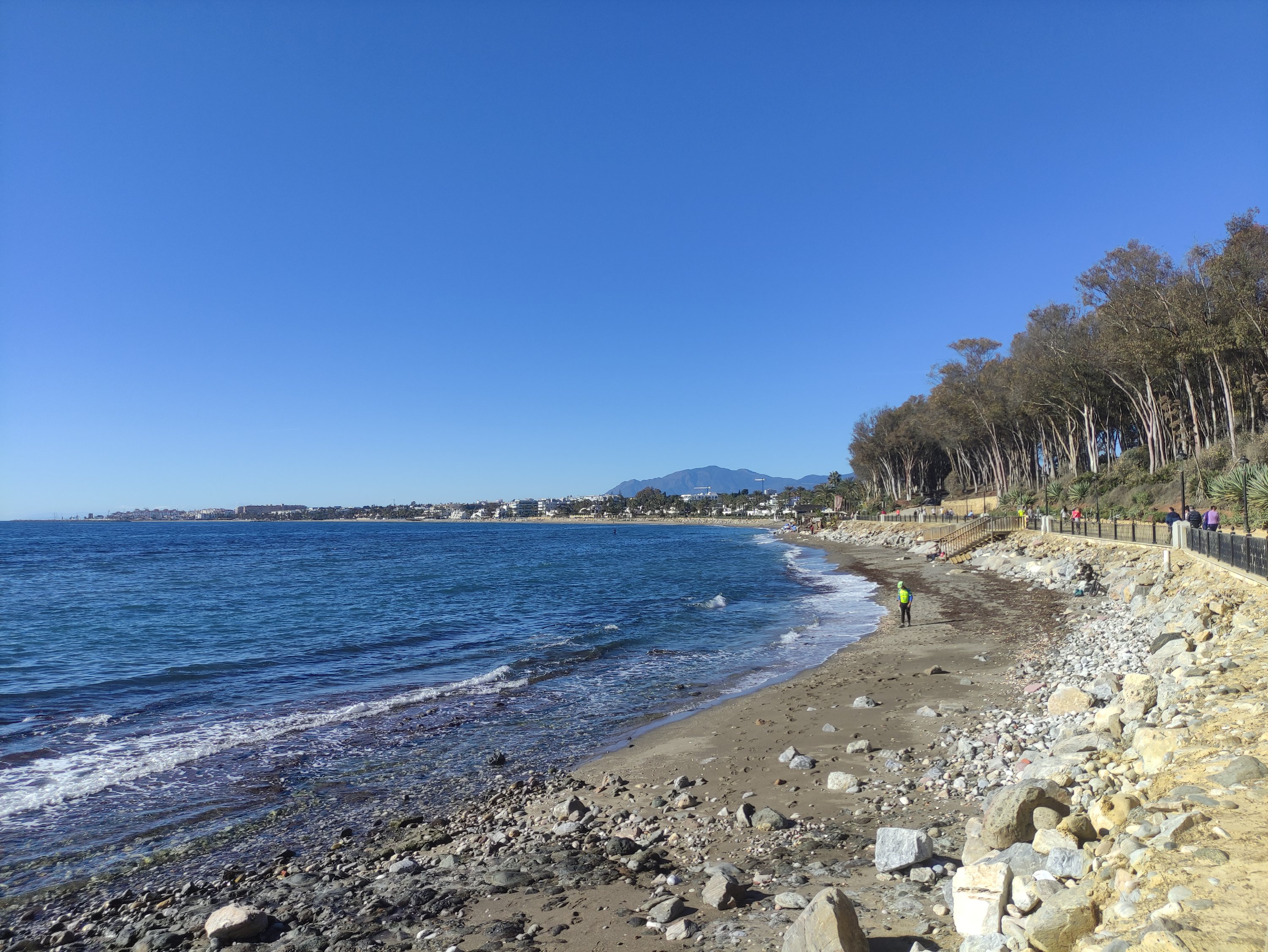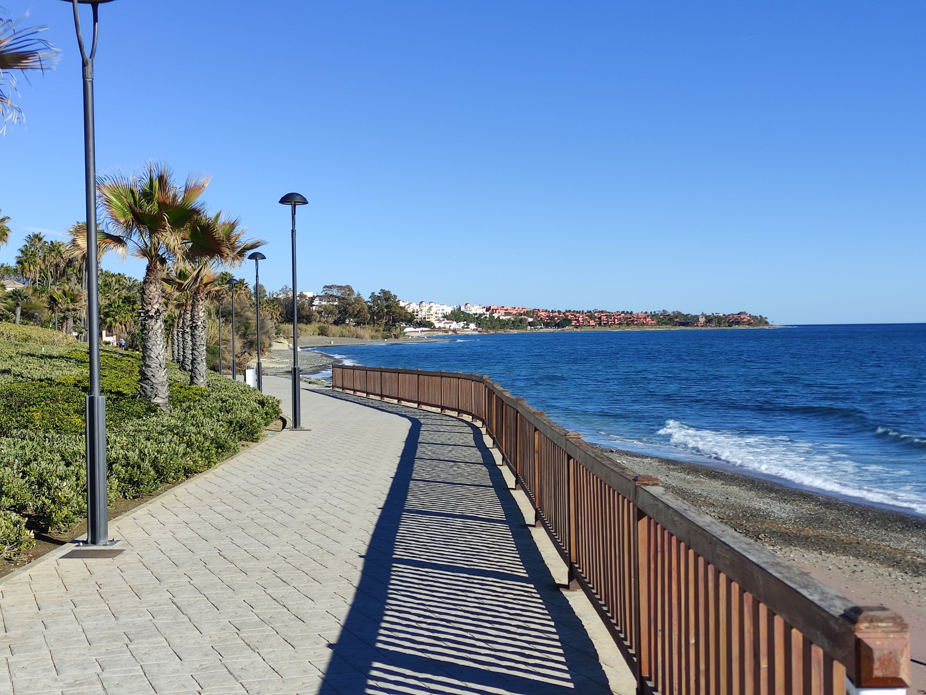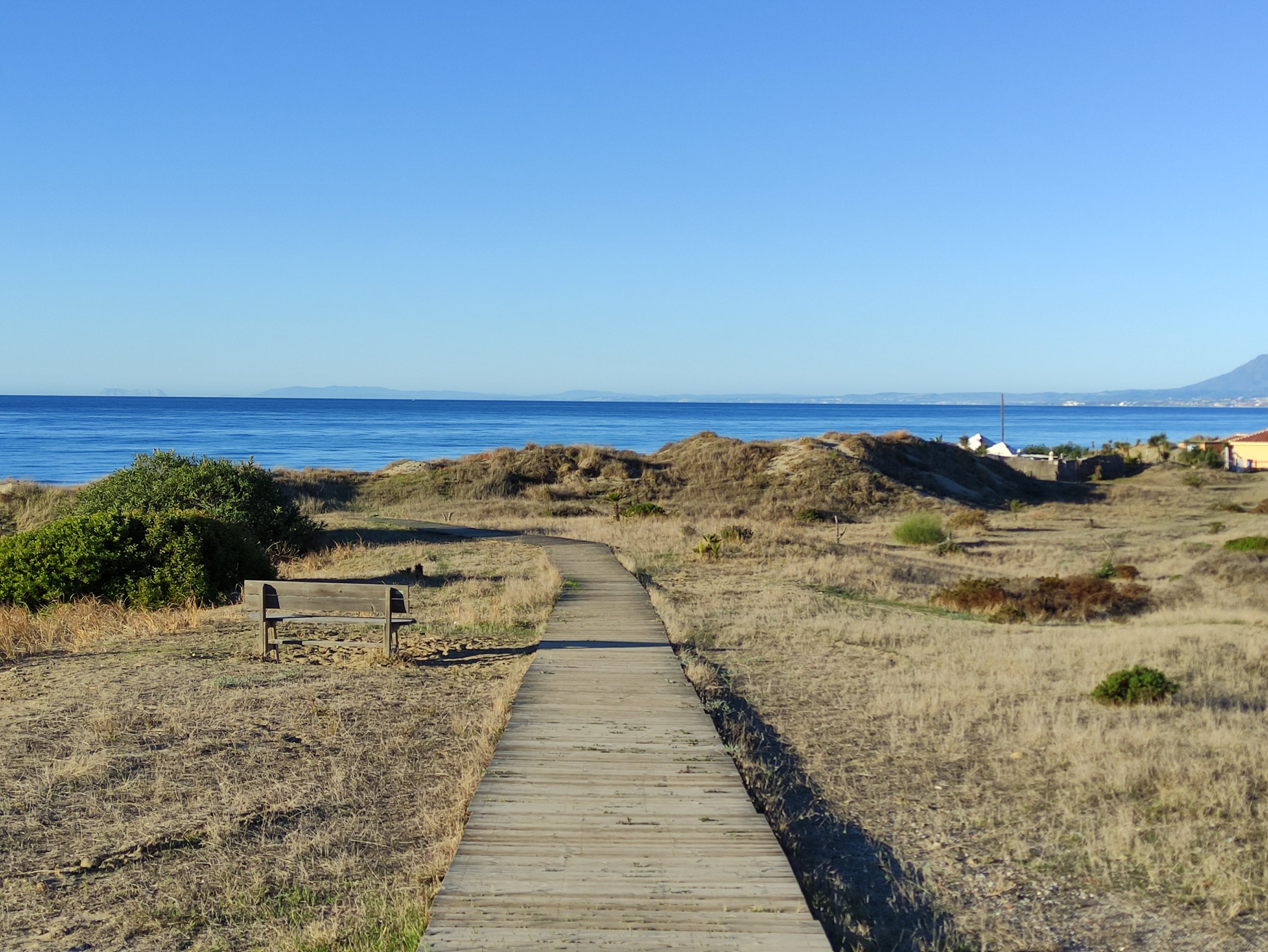 Meine nächste Etappe führte mich nach Marbella und an diesem Tag hatte ich bzgl. der Strecke Glück. Ich musste nur kurze Abschnitte am Anfang auf der Schnellstraße fahren, da ansosten am Wasser direkt ein „Senda litoral“, zu dt. ein Küstenweg, entlang führte, der auch für Radfahrer geeignet war. Oft sind diese Küstenwege Holzstege, die die Promenaden der Orte miteinander verbinden. So ging es dann zum größten Teil sehr entspannt bis nach Marbella.