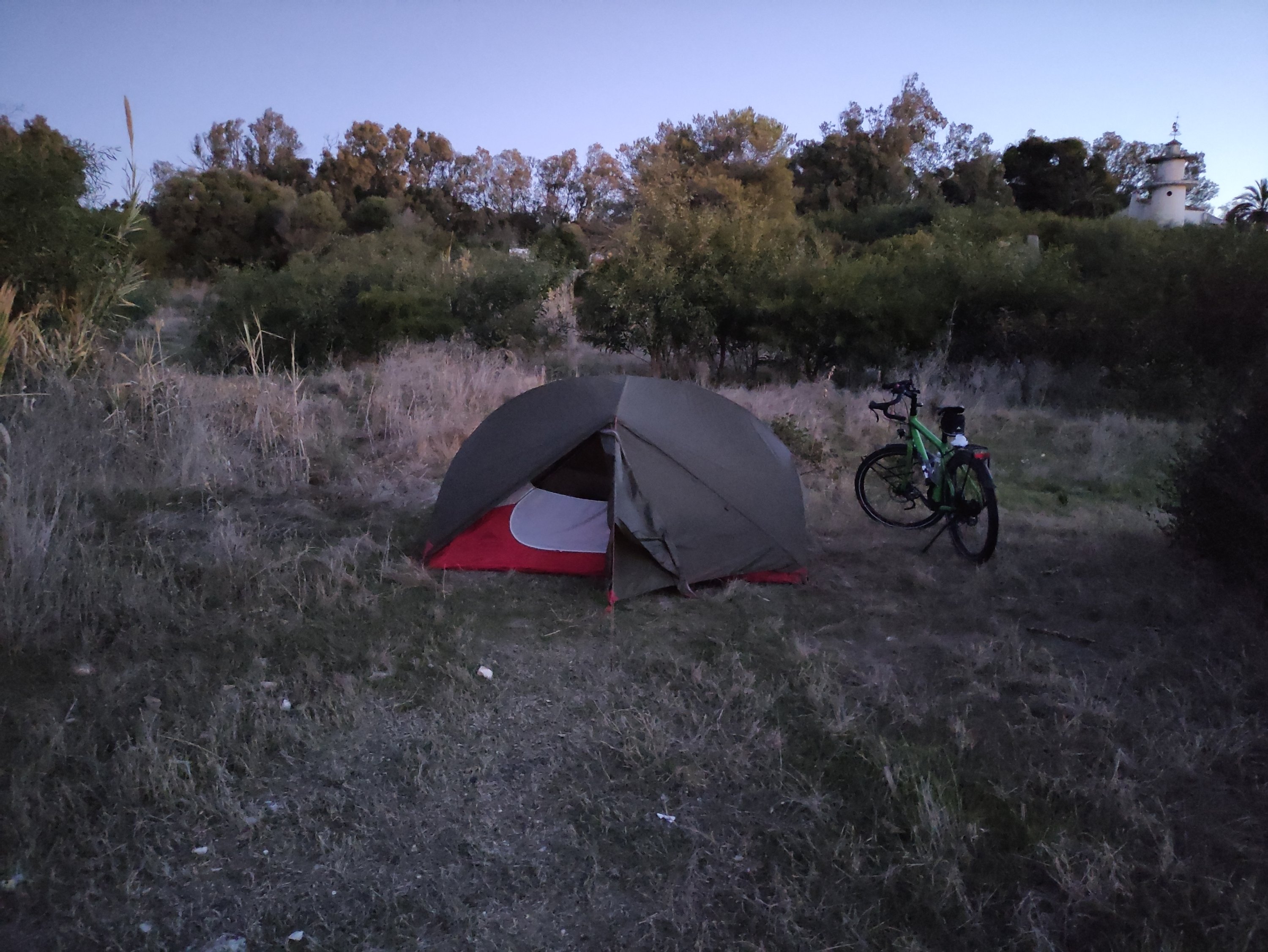 Diese Etappe war mit 35km sehr kurz und so hatte ich genügend Zeit, den Tag am Strand mit einem Picknick und mit einer kurzen Abkühlung im Mittelmeer hinter Marbella ausklingen zu lassen. Ich wartete bis die Sonne unterging und baute dann mein Zelt direkt hinter den Dünen auf.